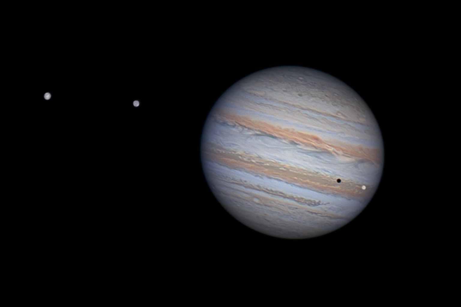 Leserbilder Astronomie: Jupiter mit Europa-Schattentransit und Kallisto/Ganymed am 18. Januar 2026