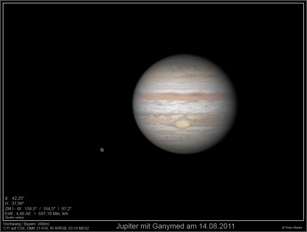 Leserbilder Astronomie: Jupiter mit Ganymed am 14.8.2011