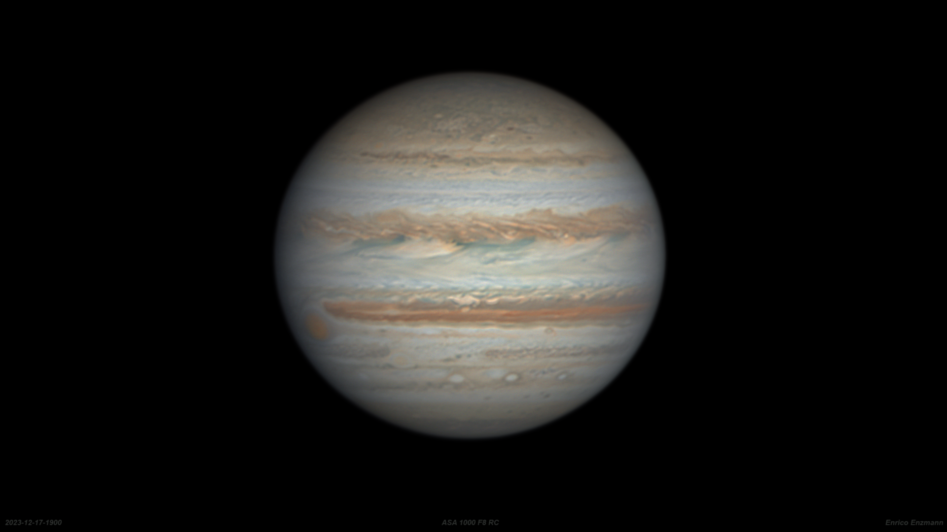 Hier ein weiteres Jupiterbild vom 17. Dezember 2023 das unter relativ guten Seeing-Bedingungen aufgenommen wurde.