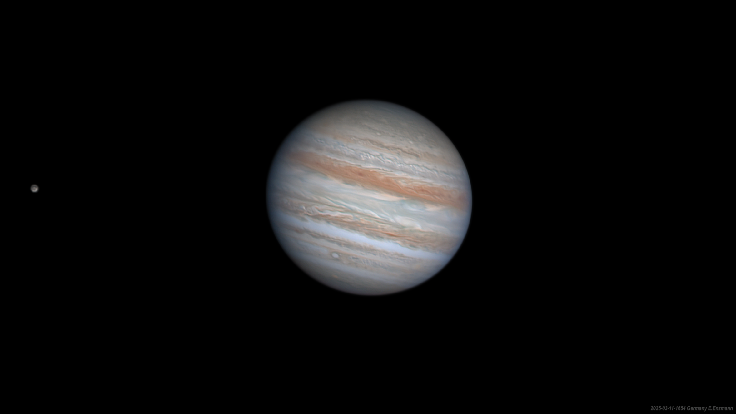Leserbilder Astronomie: Jupiter mit seinem Mond Ganymed am 11. März 2025 aus Bayern