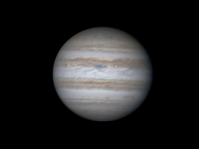 Das erste brauchbare Seeing der noch jungen Jupitersaison. Io ist rechts von der Bildmitte im NEB zu erkennen. Insgesamt zeigen sich SEB und NEB farblich eher blass und unauffällig. Für die Aufnahme kam erstmals die "One-Shot"-Farbkamera (ASI224-COOL) zum Einsatz.