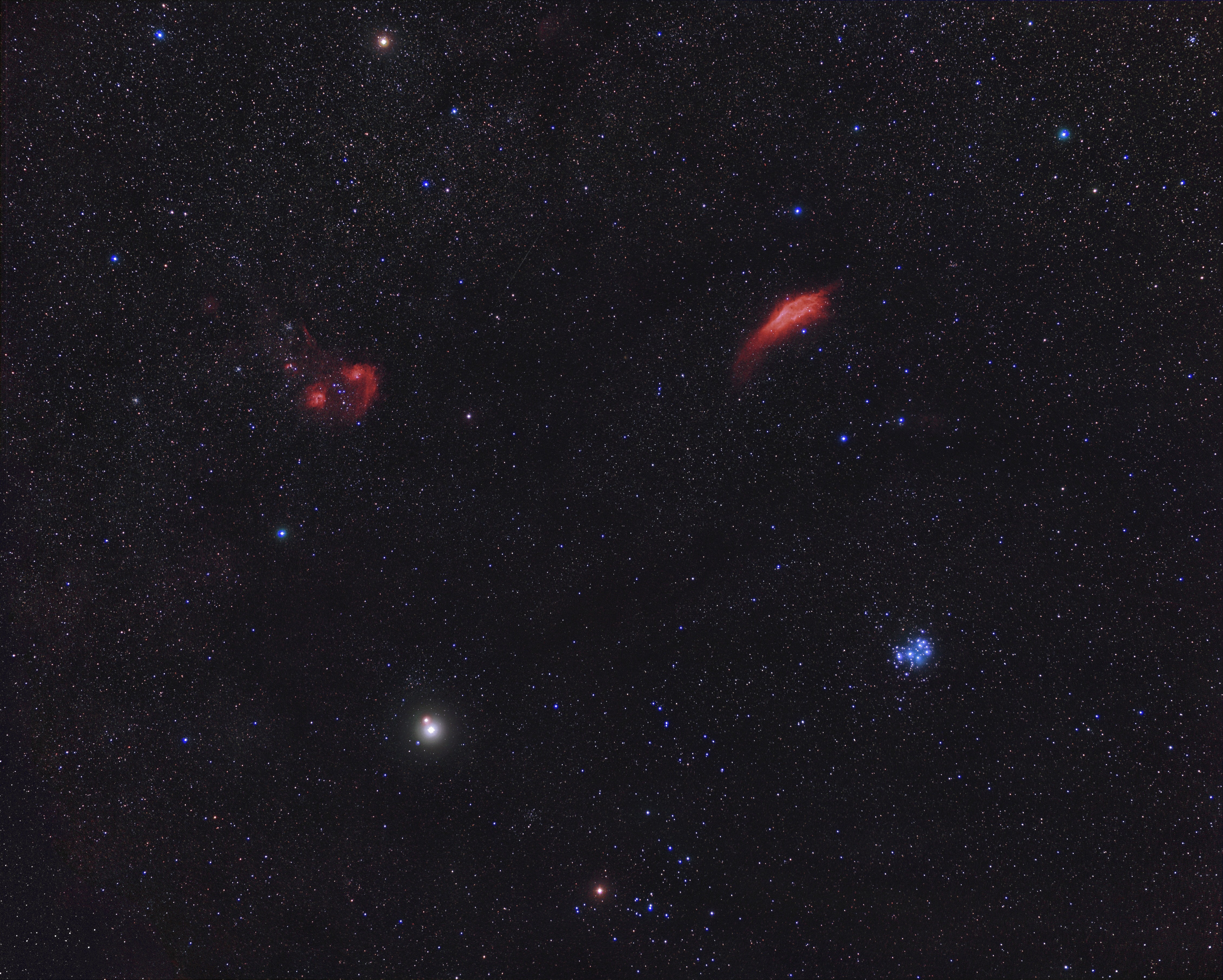 Wenige Stunden nach der engsten Begegnung stand Mars noch nahe Jupiter. Ein ungewöhnlicher Blick in H-alpha-RGB.