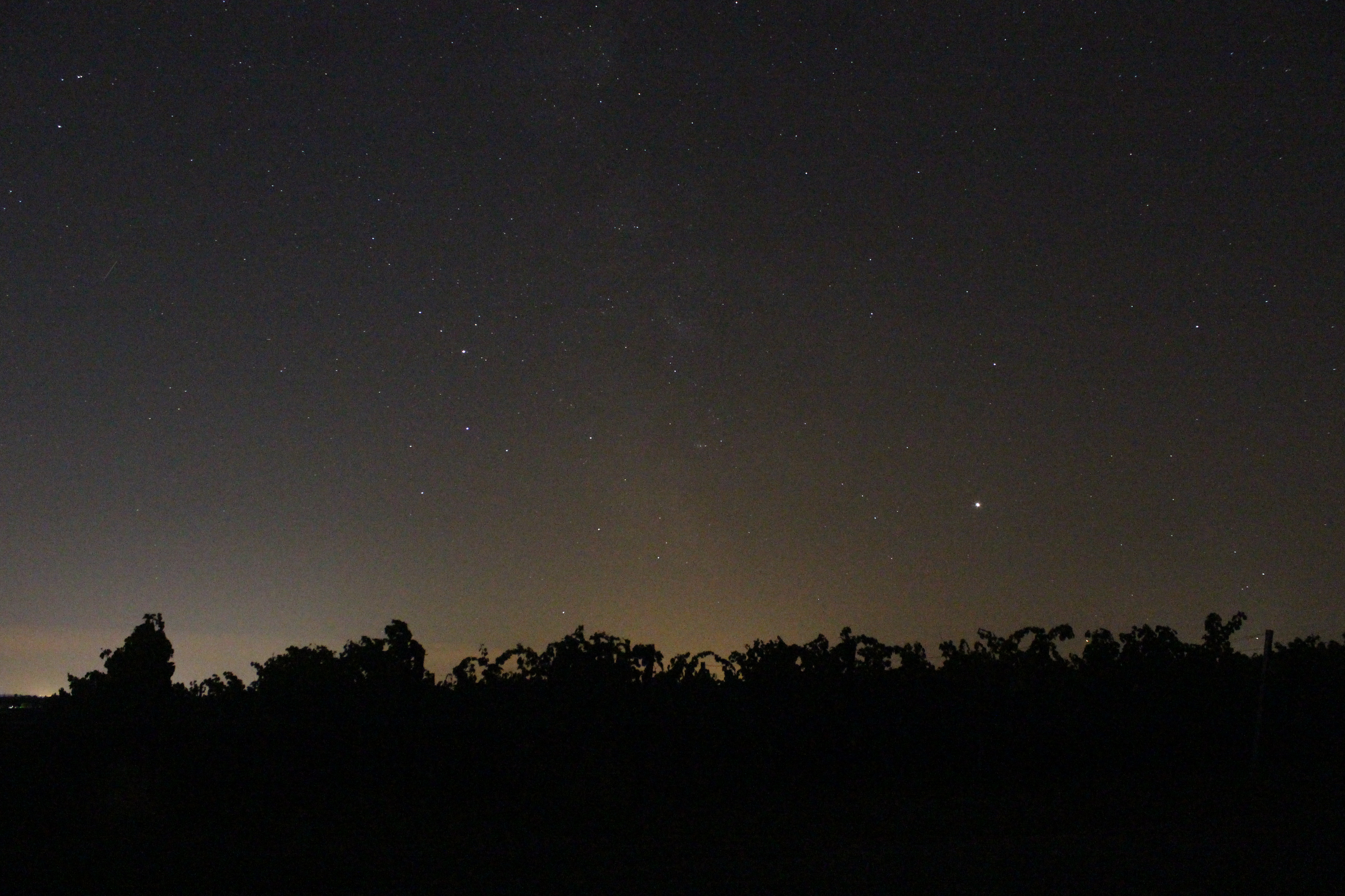 Jupiter und Saturn, aufgenommen über einem Weinfeld bei Edenkoben.
