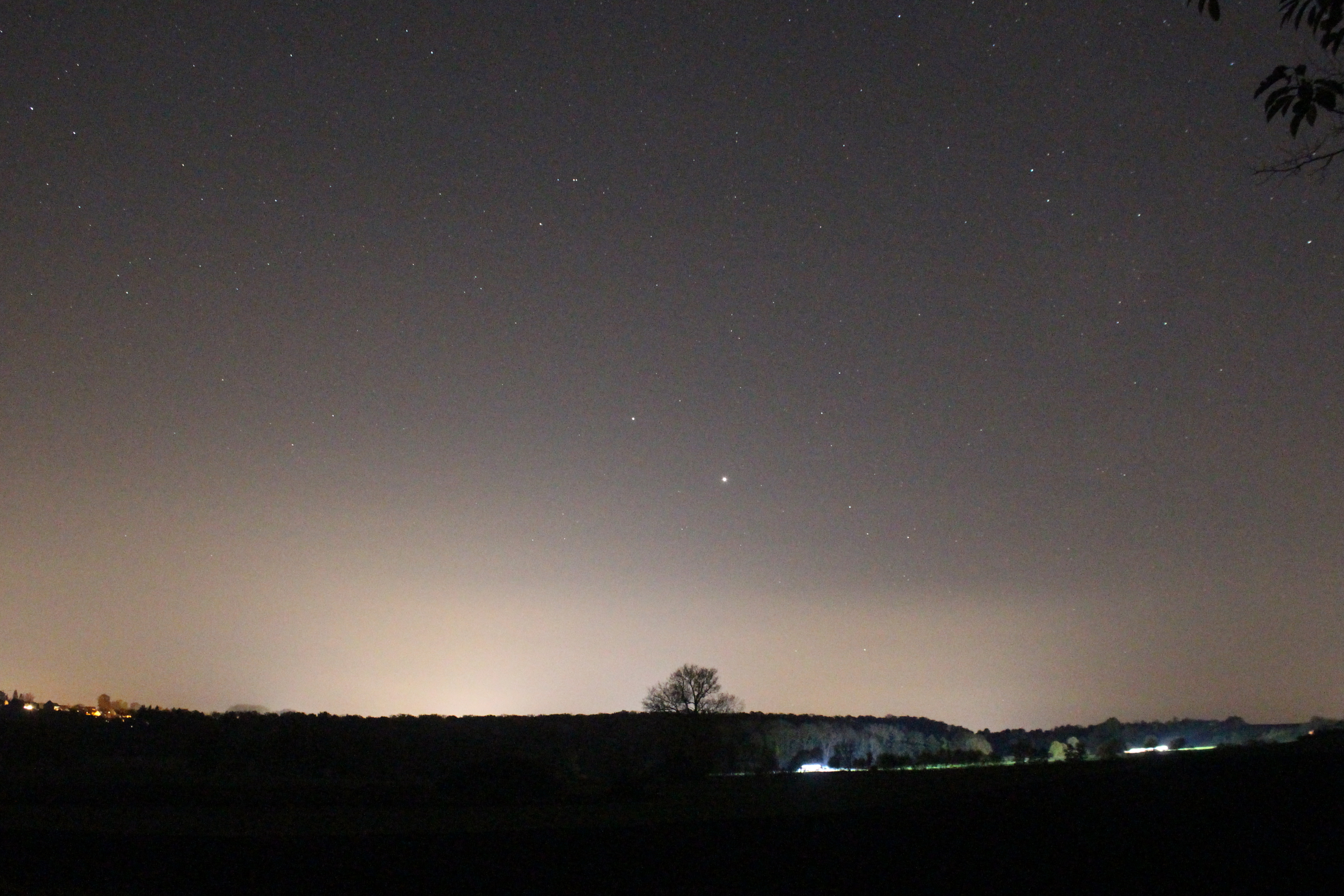 Jupiter und Saturn über dem Südwesthorizont, aufgenommen zwischen Ölbronn und Dürrn.