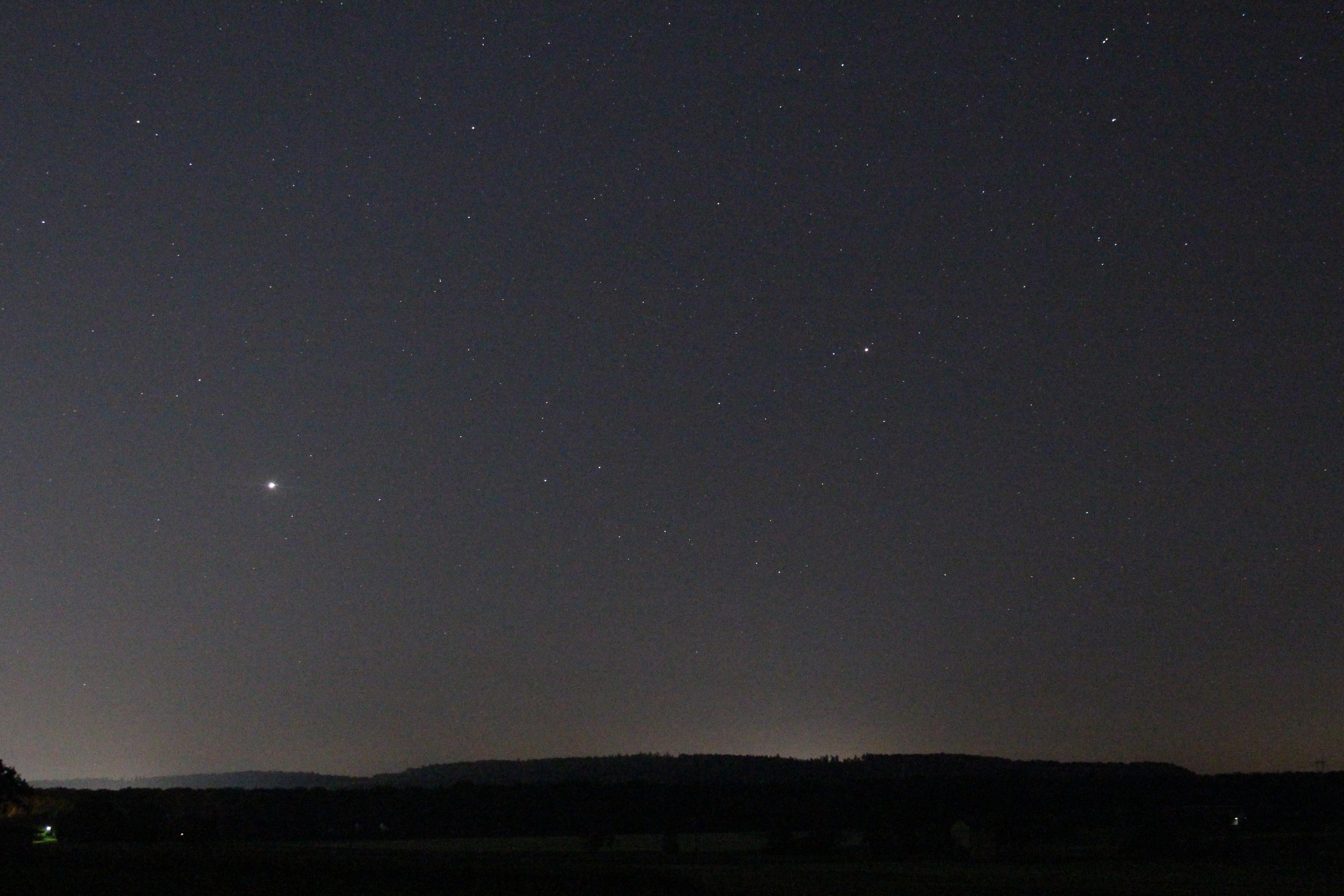 Jupiter im Sternbild Wassermann und Saturn im Sternbild Steinbock, aufgenommen südlich vom Sindelfinger Ortsteil Darmsheim.