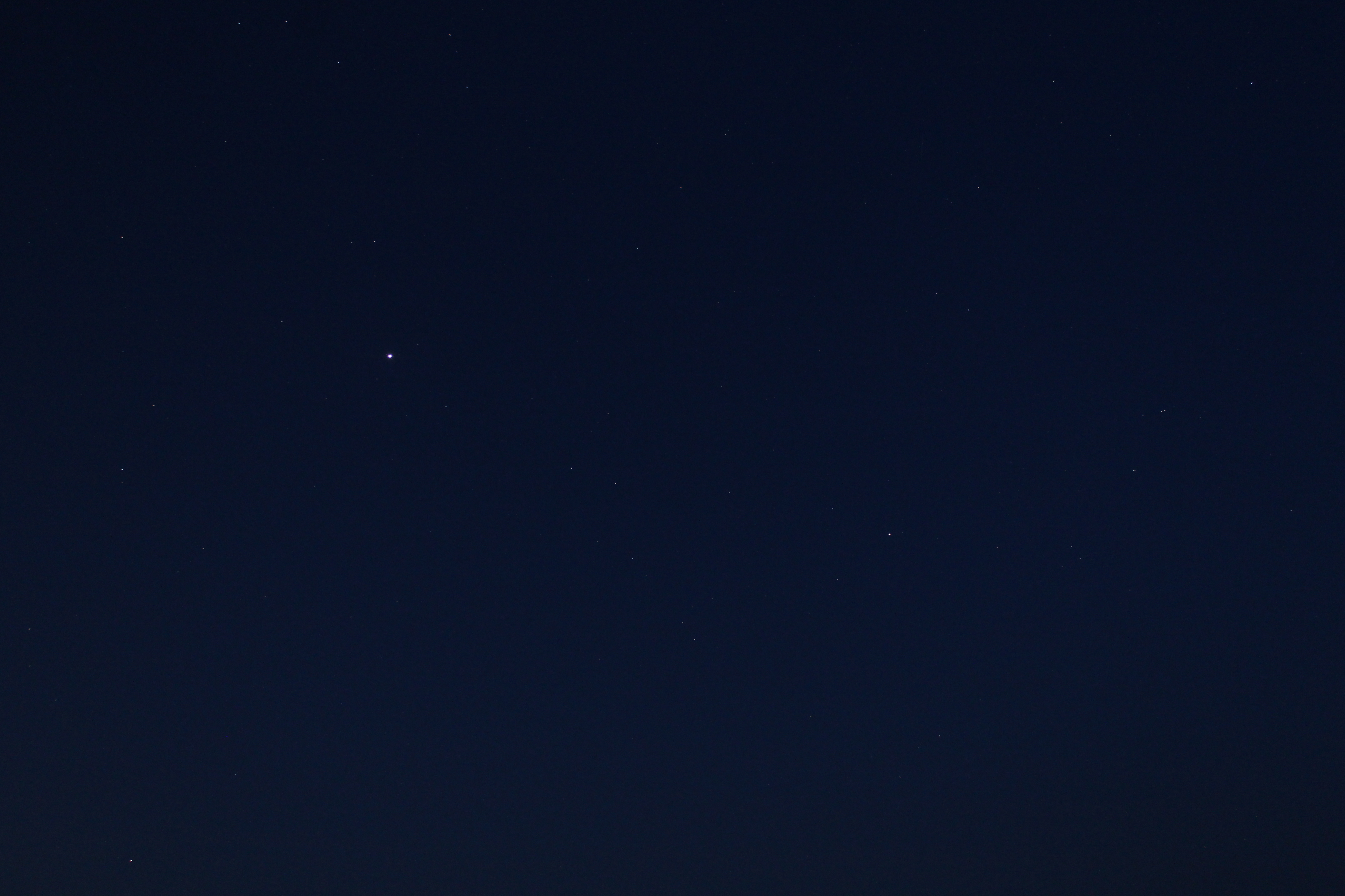 Jupiter und Saturn in der beginnenden Morgendämmerung in den Sternbildern Wassermann und Steinbock.