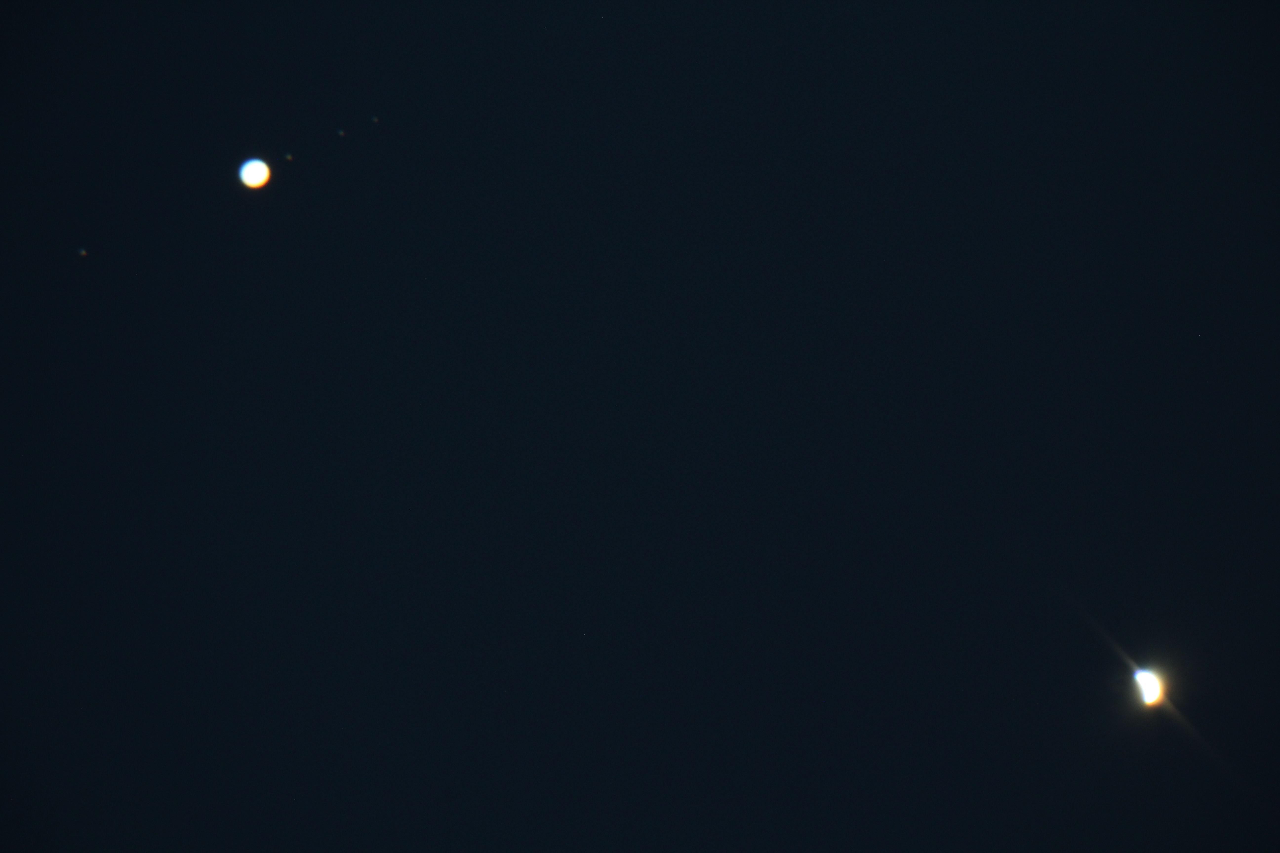 Am Abend des 30. Juni 2015 kam es zur engen Begegnung von Venus und Jupiter: um 23 Uhr betrug ihr Abstand zueinander etwa 20 Bogenminuten. Klein genug, um sie über Dortmund mit einer Canon EOS 600D an einem Celestron 9 zu verewigen.