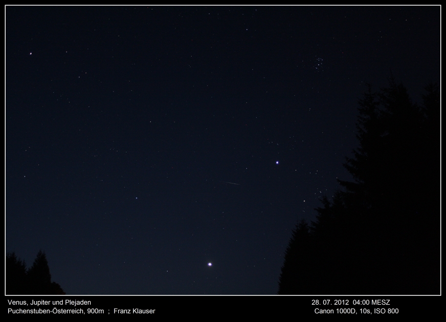 Am Morgen des 28. Juli 2012 boten Jupiter und Venus eine wunderbare Gruppierung zusammen mit den Plejaden.
