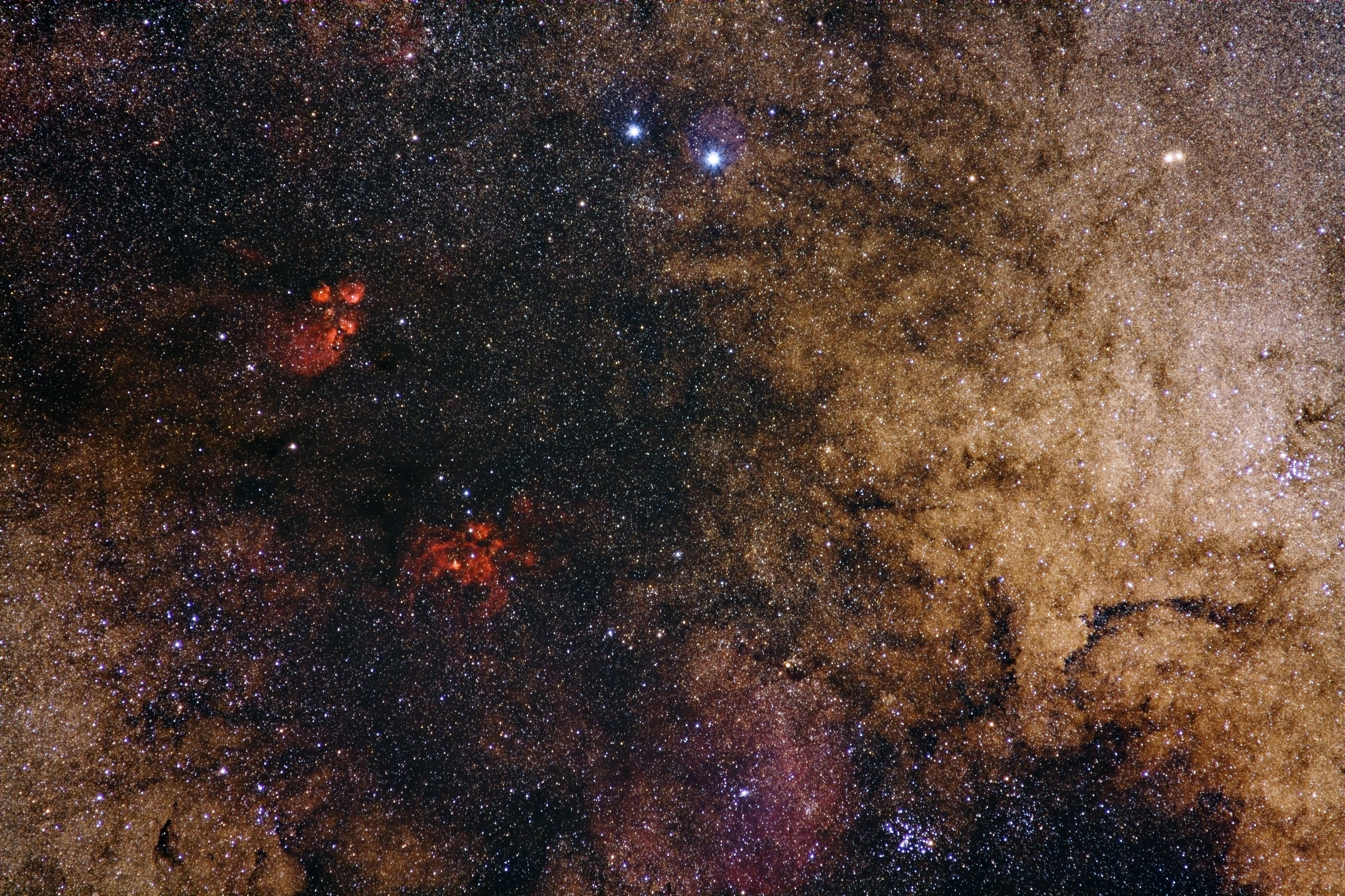 | Objekt | NGC 6334 (Cat’s Paw Nebula) & NGC 6357 (War & Peace Nebula)) |