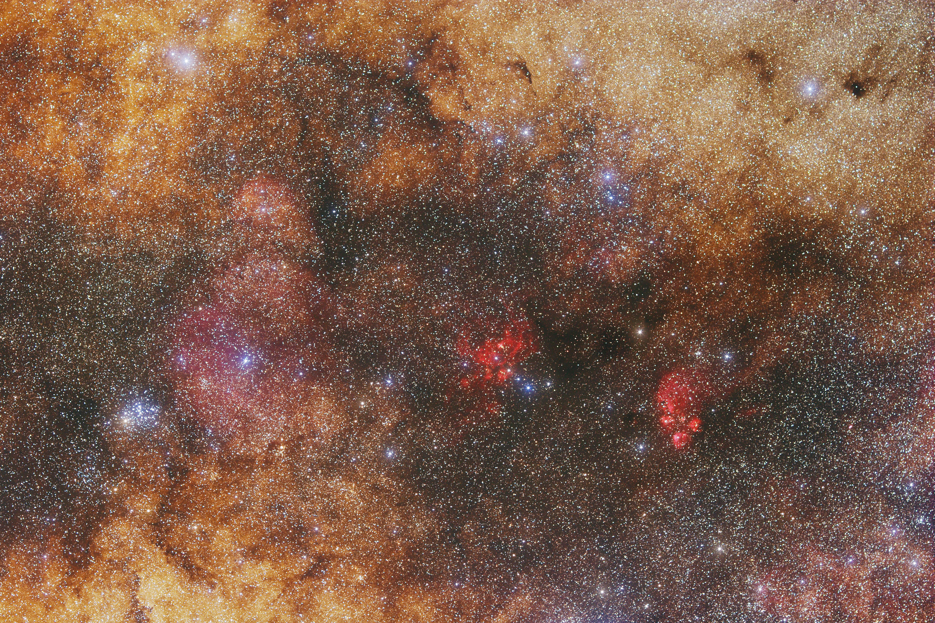 Leserbilder Astronomie: Katzenpfotennebel (NGC 6334) mit Begleiter (NGC 6357)
