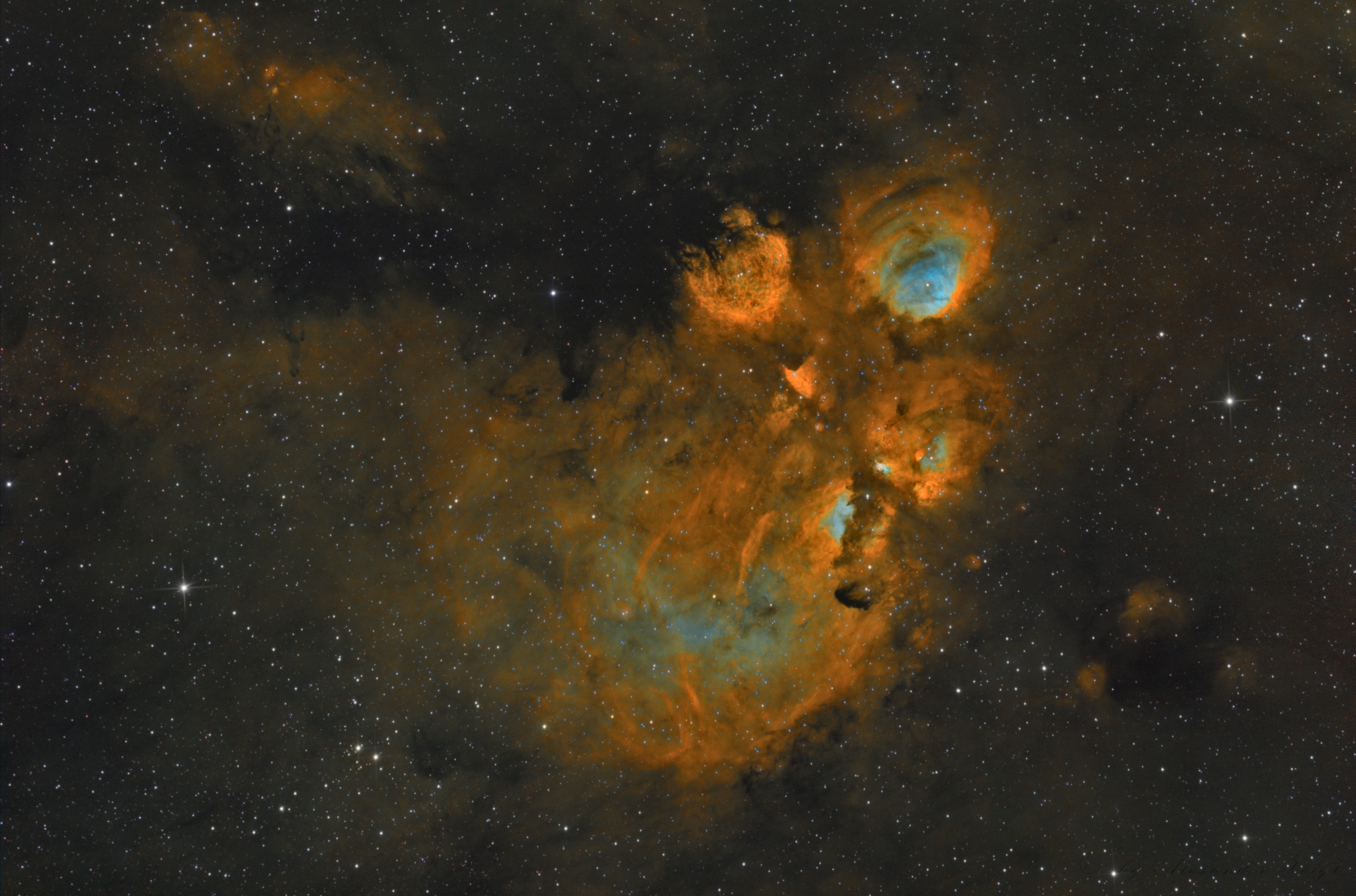 Bei meinem letzten Aufenthalt auf La Palma, war eines meiner geplanten Ziele der Katzenpfotennebel. Ich konnte auch über drei Nächte hinweg H-Alpha-, OIII- und SII-Licht sammeln. Das Bild hier ist das Resultat der insgesamt 15 Stunden bei F2,8.