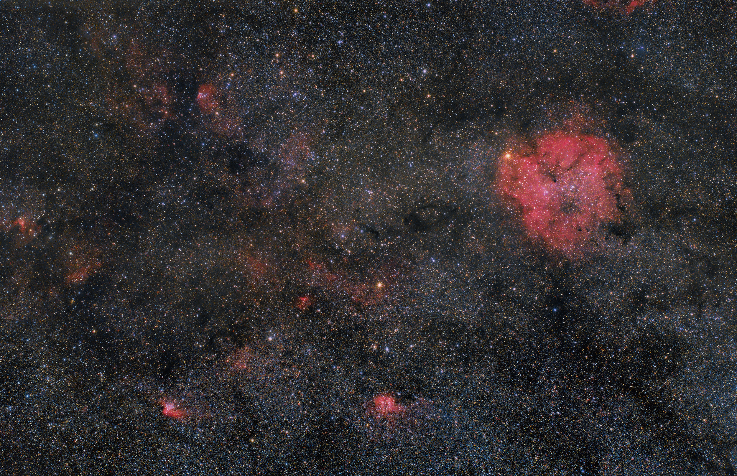 Ein Ausschnitt aus der Kepheus-Region vom Elefantenrüsselnebel bis zum Zauberernebel. Die Aufnahme entstand als Nebenprojekt wärend der letzten Session mit dem Canon 85 mm, f1.8, und dem Omegon MiniTrack LX3.