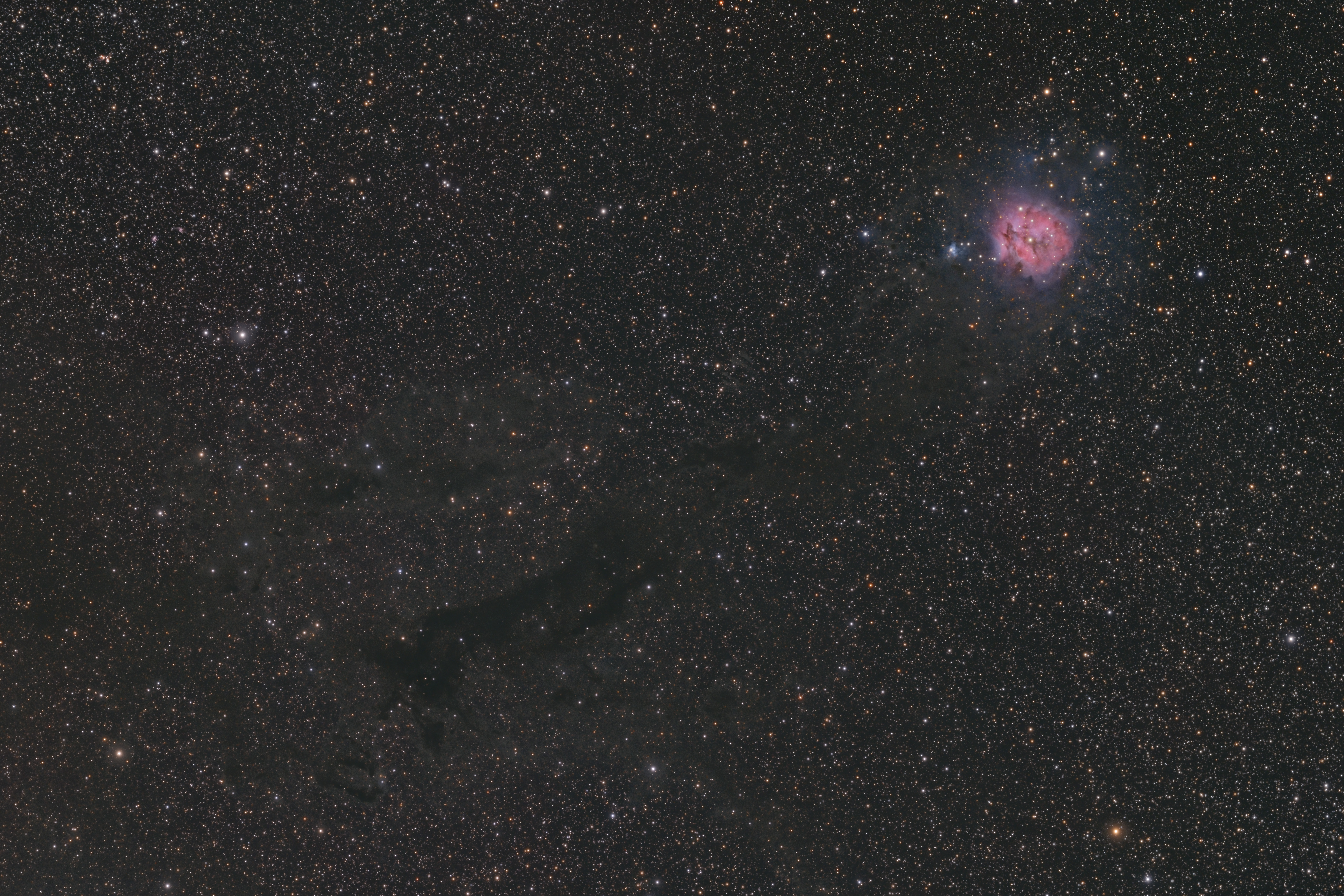 Eine interessantes Gebiet für Weitfeldaufnahmen findet sich an der Grenze zwischen Kepheus und Schwan: Der Kokon-Nebel zusammen mit dem Dunkelnebel Barnard 168.