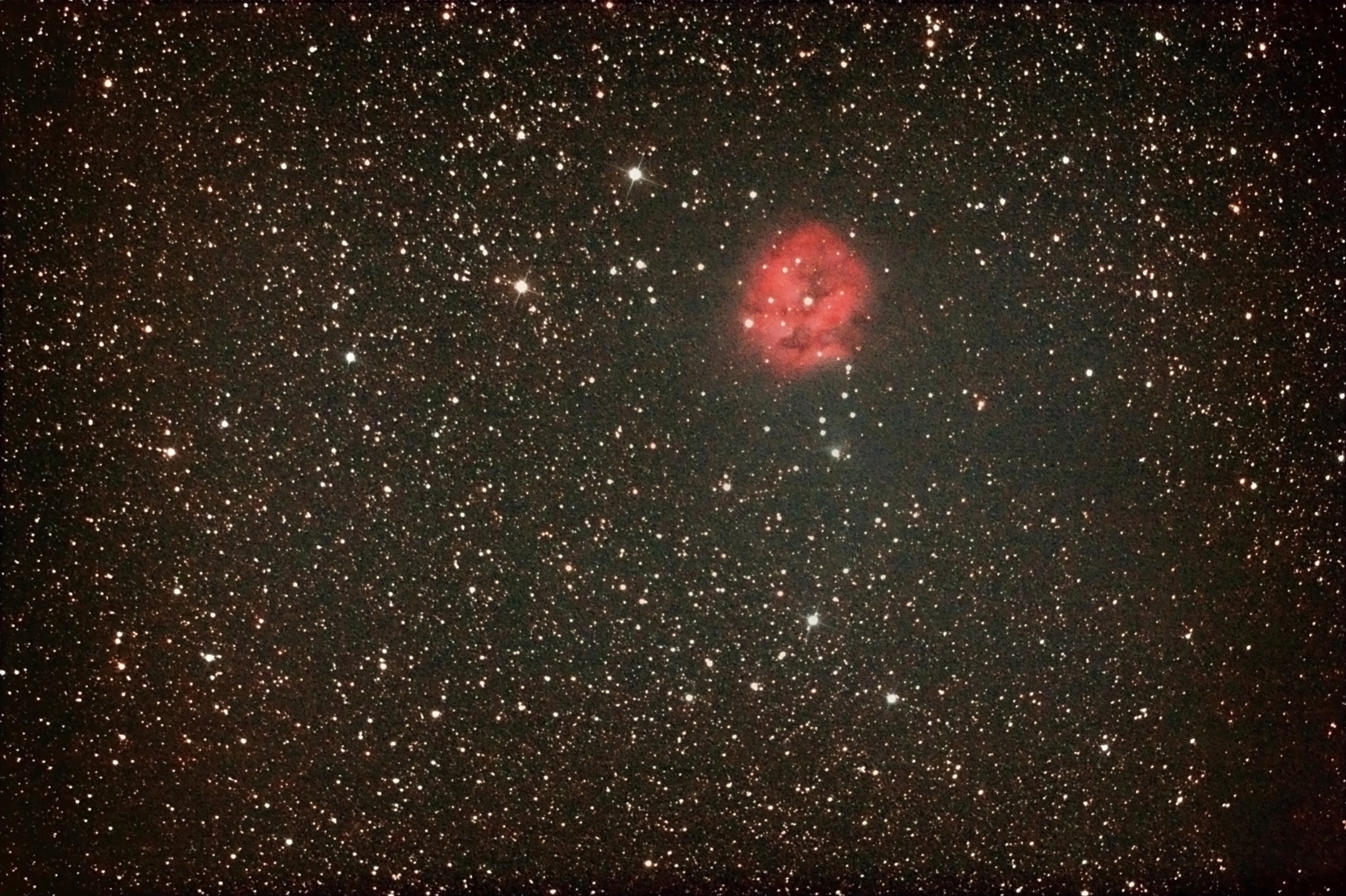 In meinem Bilderarchiv hatte ich noch eine Aufnahme des Kokonnebels IC 5146 gefunden. Die kleine Besonderheit besteht nun darin, dass ich für diese Aufnahme zwei Summenbilder mit unterschiedlichen optischen Konfigurationen per Standardsoftware Fitswork zusammengeführt habe (Newton-Reflektoren 200/1000 mm und 130/650mm, beide Skywatcher). Allerdings hätte ich gerne wesentlich mehr Lightframes zur Verfügung gehabt, ein alter aber immer wieder aktueller Zielkonflikt zwischen mitteleuropäischem Wetter und verfügbarer Zeit für die Astrofotografie.