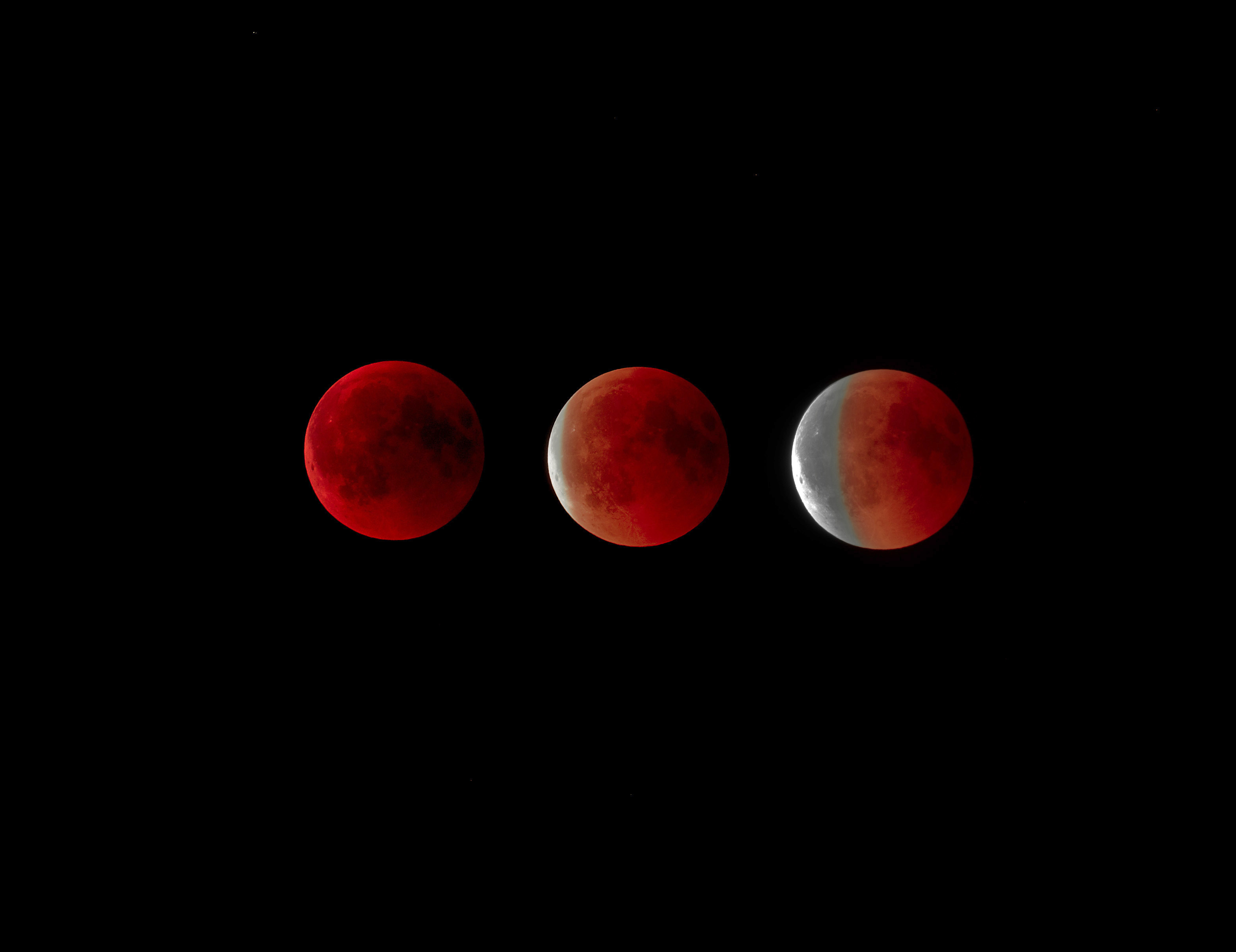 Die drei Aufnahmen der Mondfinsternis entstanden im heimischen Garten bei tropischen Temperaturen.