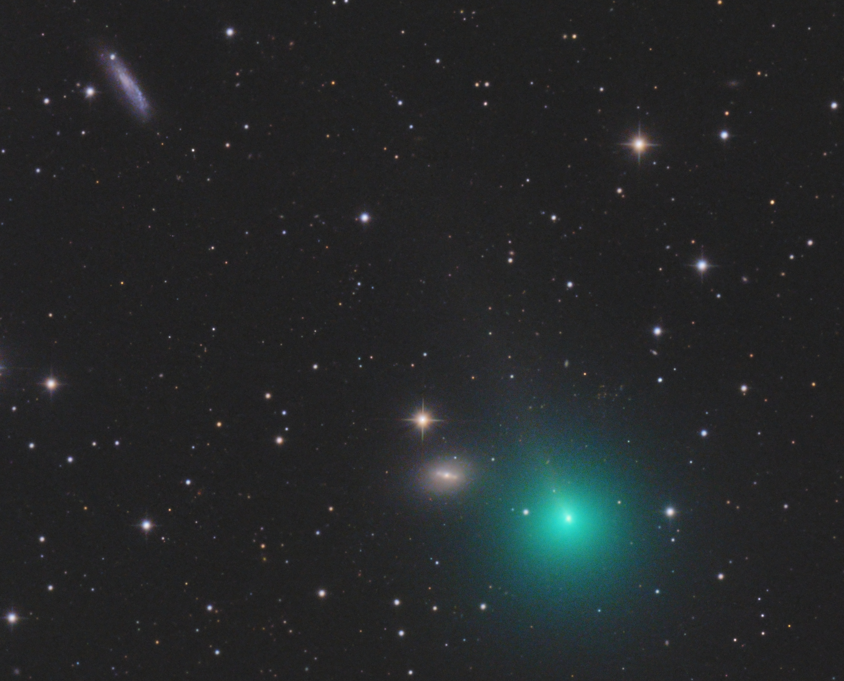 Aufnahme des Kometen 24P (Schaumasse) am 27. Dezember 2025 gegen 3:15 UT. Über die Weihnachtsfeiertage hatte es glücklicherweise ein paar klare Nächte ohne Nebel und Mond. Bei den beiden Galaxien im Bild handelt es sich um NGC 4421, welche sich neben dem Kometen befindet, sowie um NGC 4396.