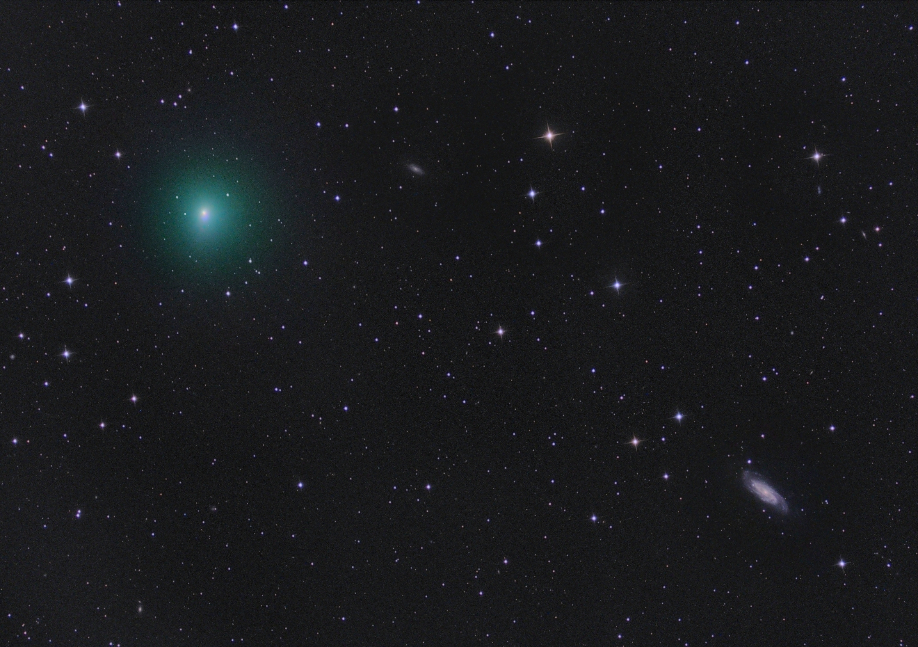 Kometen und Deep-Sky-Objekte begegnen sich gelegentlich scheinbar, doch in Wirklichkeit sind sie weit voneinander entfernt.