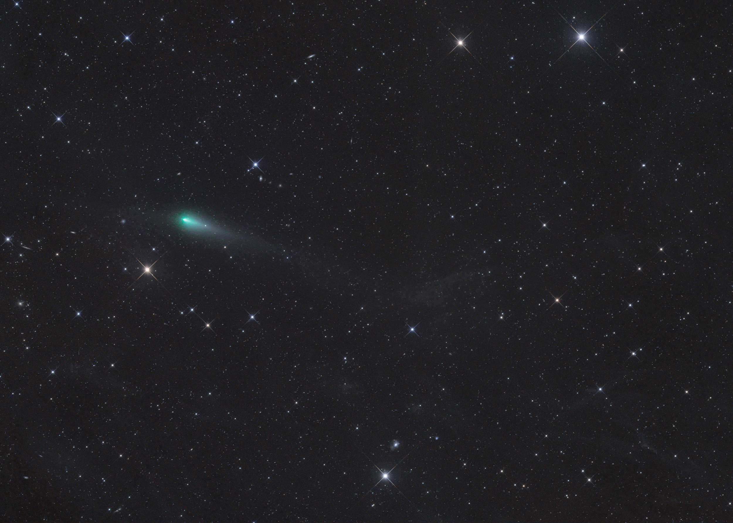 Der Komet zeigt hier einen schwachen, langen Gegenschweif.