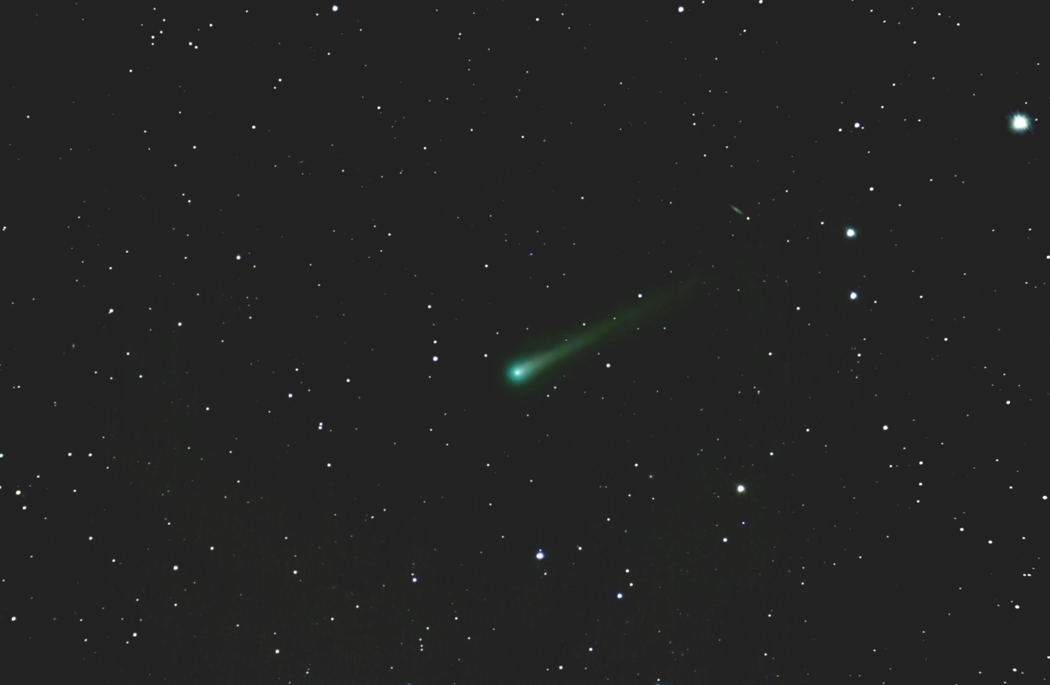 Am letzten Tag im Oktober machte das Wetter bei uns in Norddeutschland in Peine morgens vor Sonnenaufgang eine Aufnahme von Ison möglich. Er befand sich im Sternbild Löwe und sein Schweif zeigt in Richtung der Galaxie NGC 3526 und des Sterns 63 Leo.