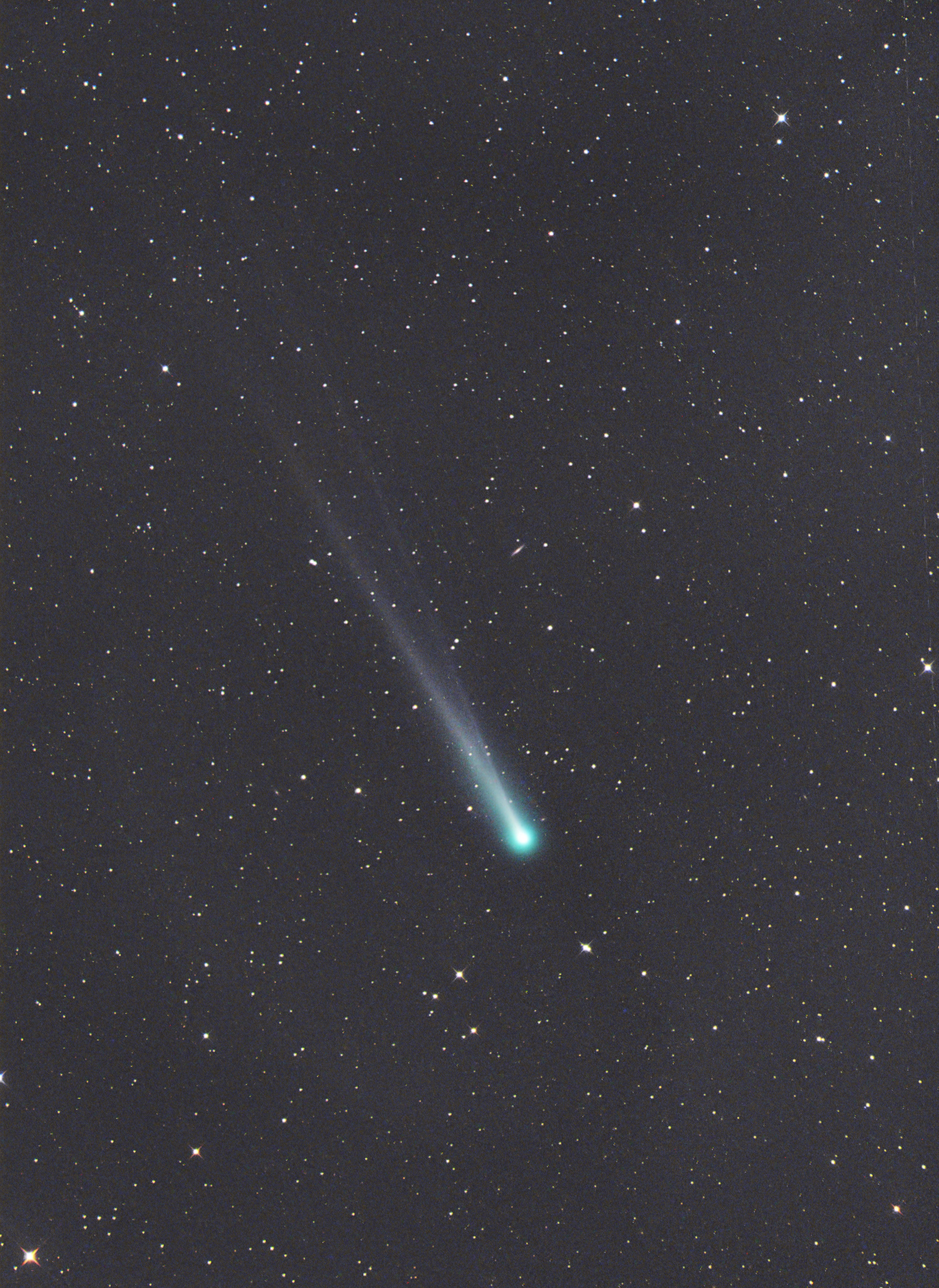 Die Aufnahme entstand unter extrem schwierigen Bedingungen. Gemeinsam mit Michael Jäger wartete ich stundenlang in der Kälte am Jauerling, bis die hochnebelartige Bewölkung gerade noch rechtzeitig den Blick auf den Kometen freigab. Hier ist mein Aufnahmeergebnis.