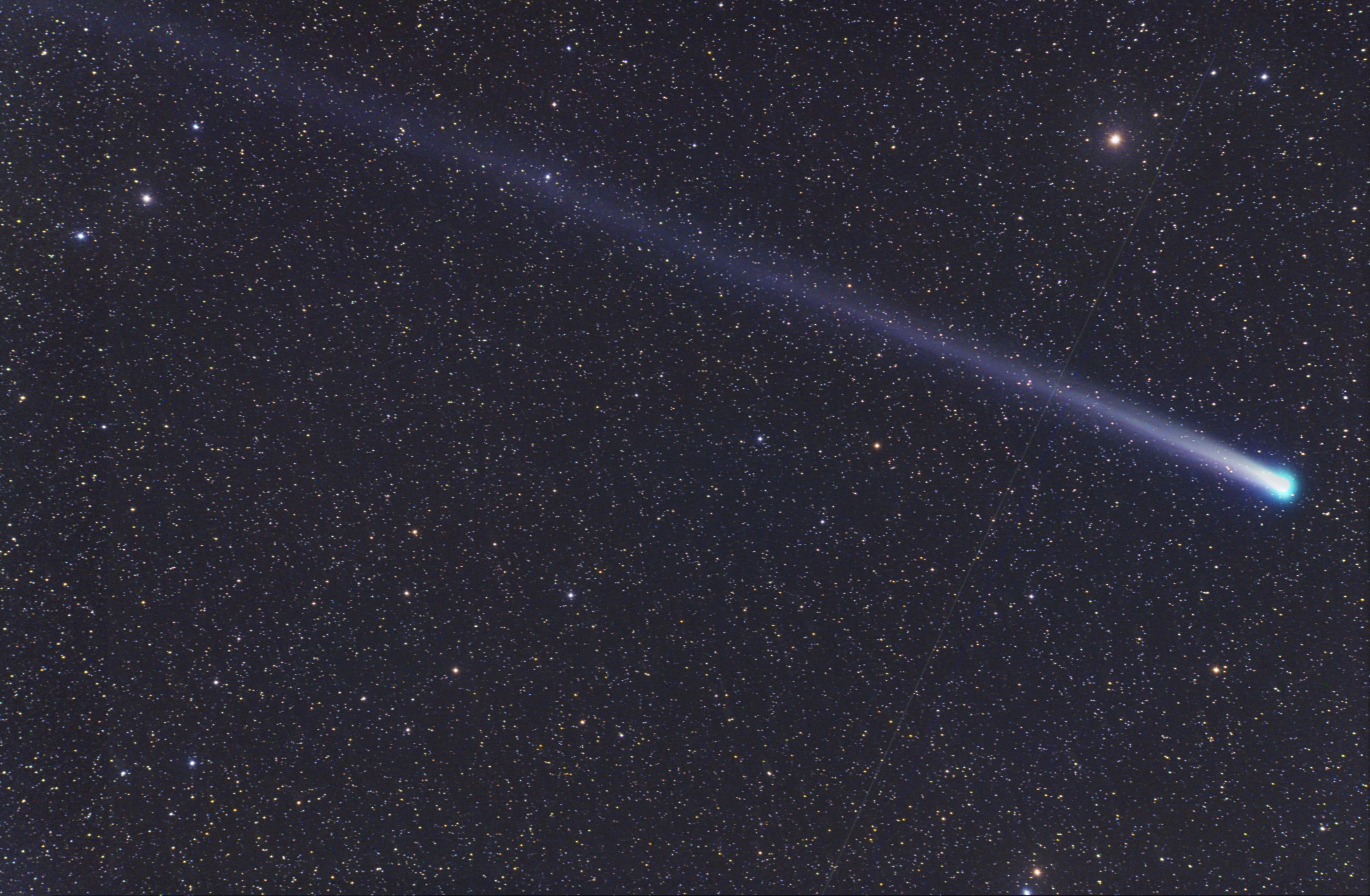 Das Gesichtsfeld bei 200 mm Brennweite und dem Sensor der FLI PL 16070 ist 10,2° x 6,8°. Die Länge des abgebildeten Schweifs ist daher ca. 8°
