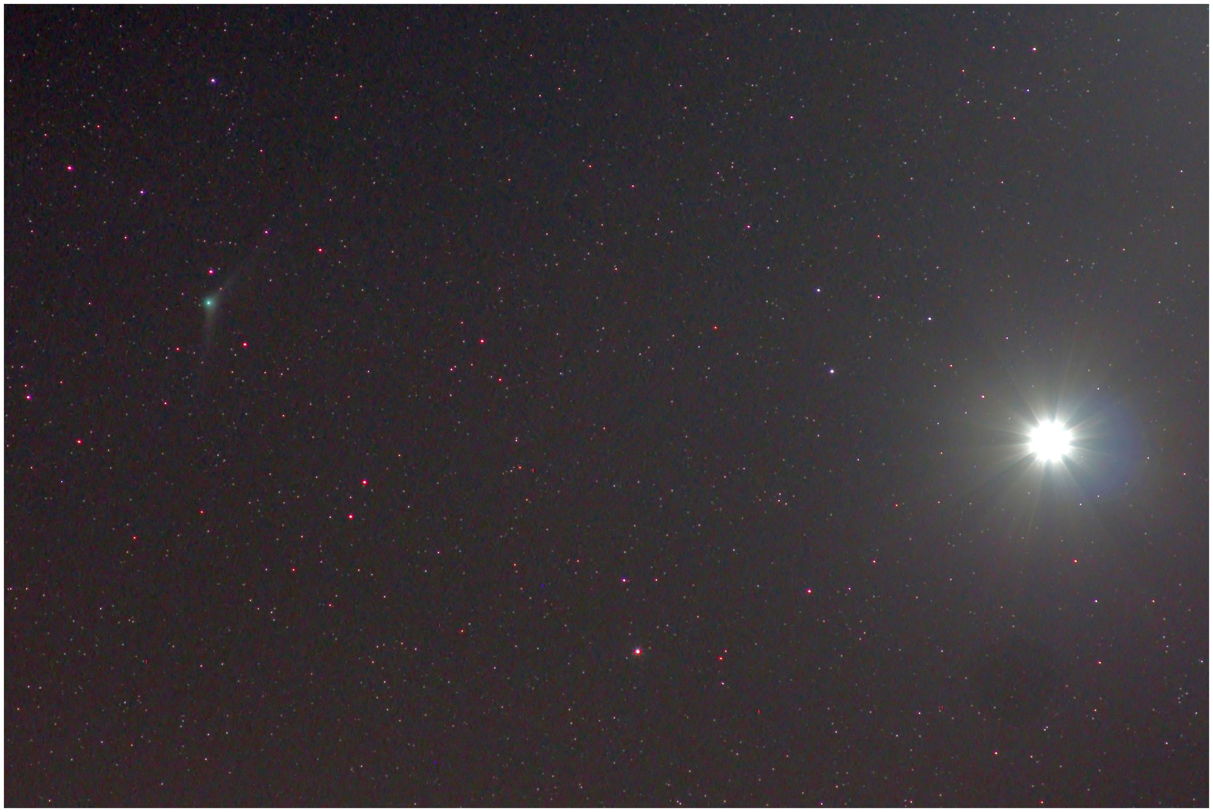 Wenn schon ein Komet zusammen mit einem Planeten für die Kameras posiert, dann hält mich kein früher Montagmorgen und auch kein in der Nähe stehender Mond davon ab, solch ein seltenes Motiv abzulichten.