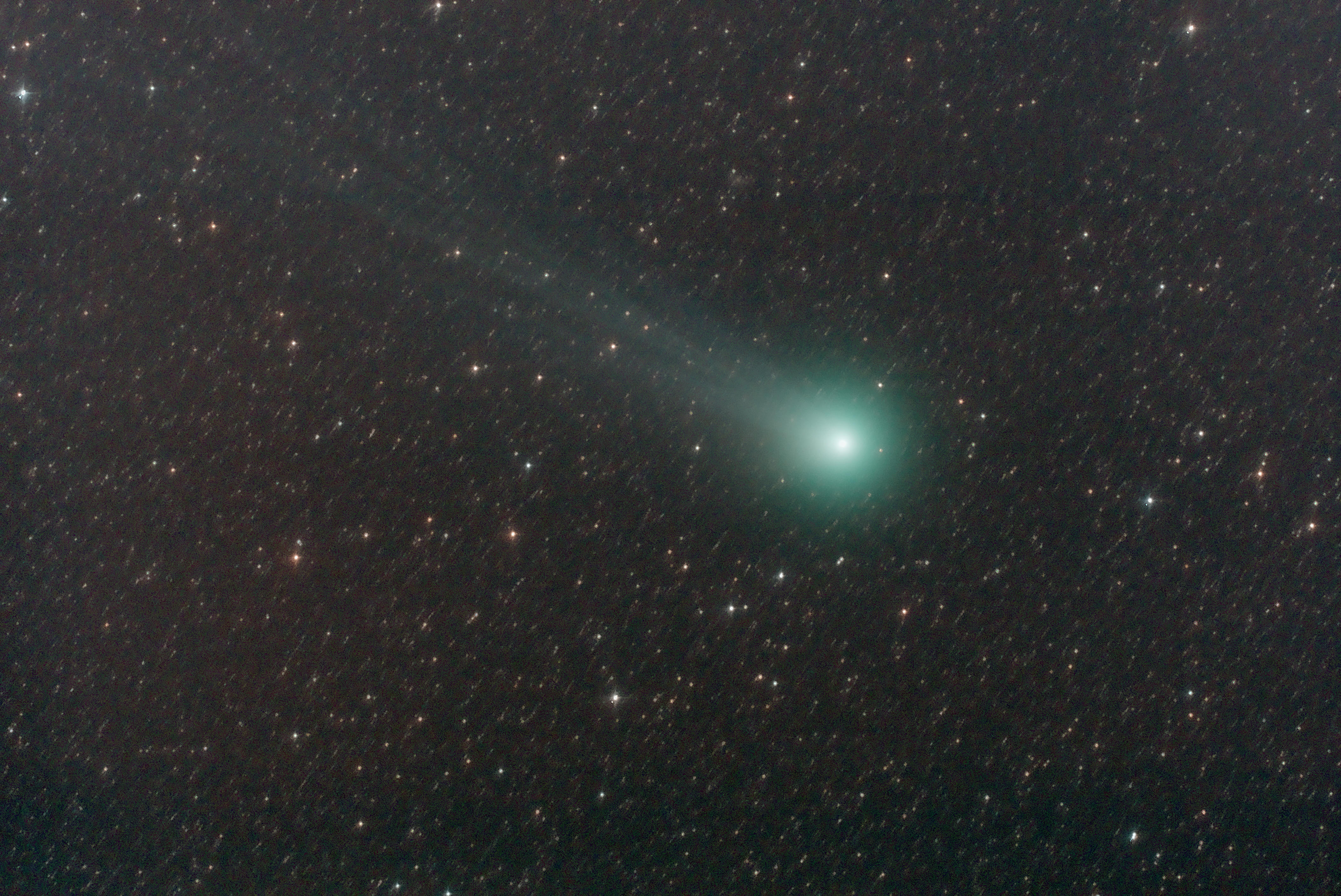 | Nachbearbeitung | gestackt auf den Kometenkern mit DSS, ansonsten Fitswork und Gimp |
