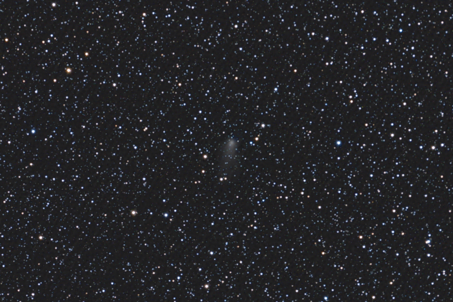 Mitten im Gewirr der Milchstraße, im Sternbild Leier nahe der Grenze zum Schwan, fotografierte ich am 7. August 2015 den 12,3 mag hellen Kometen. Der Komet wurde auf das Bild von 23:00 Uhr MESZ zentriert (mit DeepSkyStacker). Bildausschnitt circa 30 x 45 Bogenminuten. Es war leicht diesig, und es war über 21 Grad Celsius warm. Trotzdem sind Sterne bis mindestens 18. Größe zu identifizieren.
