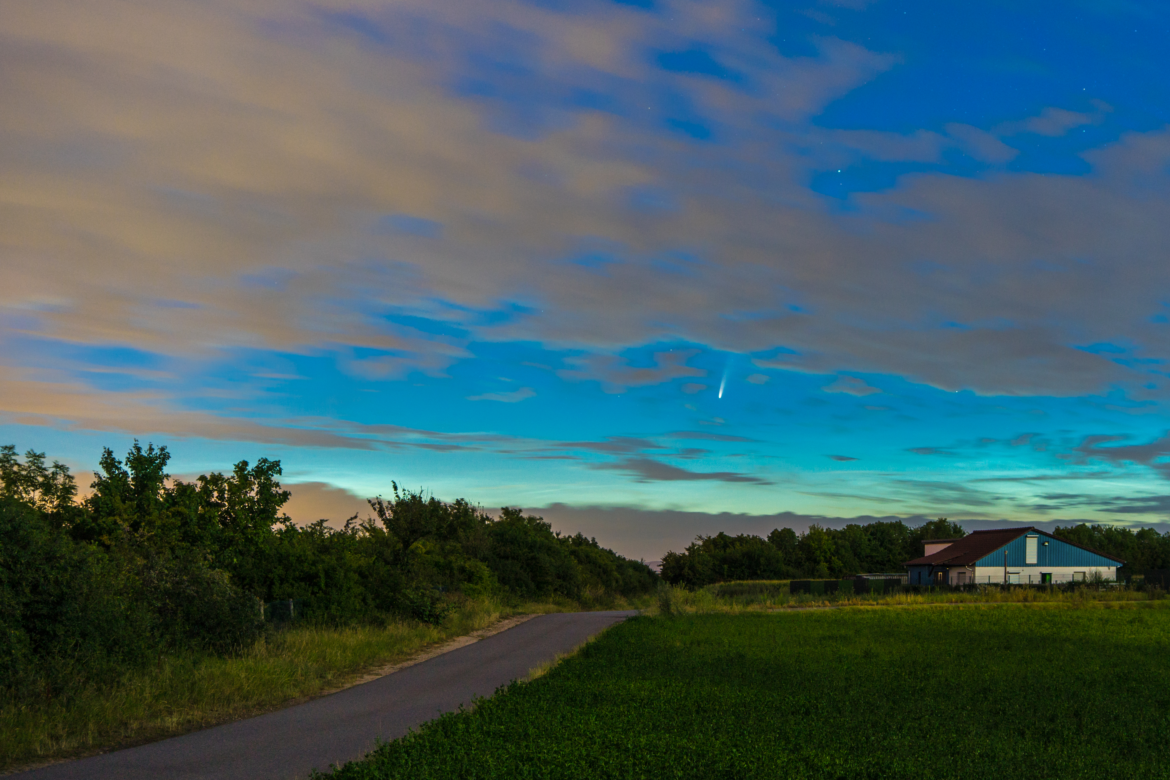 Leserbilder Astronomie: Komet C/2020 F3 (NEOWISE) über Ilvesheim (neu bearbeitete Version)