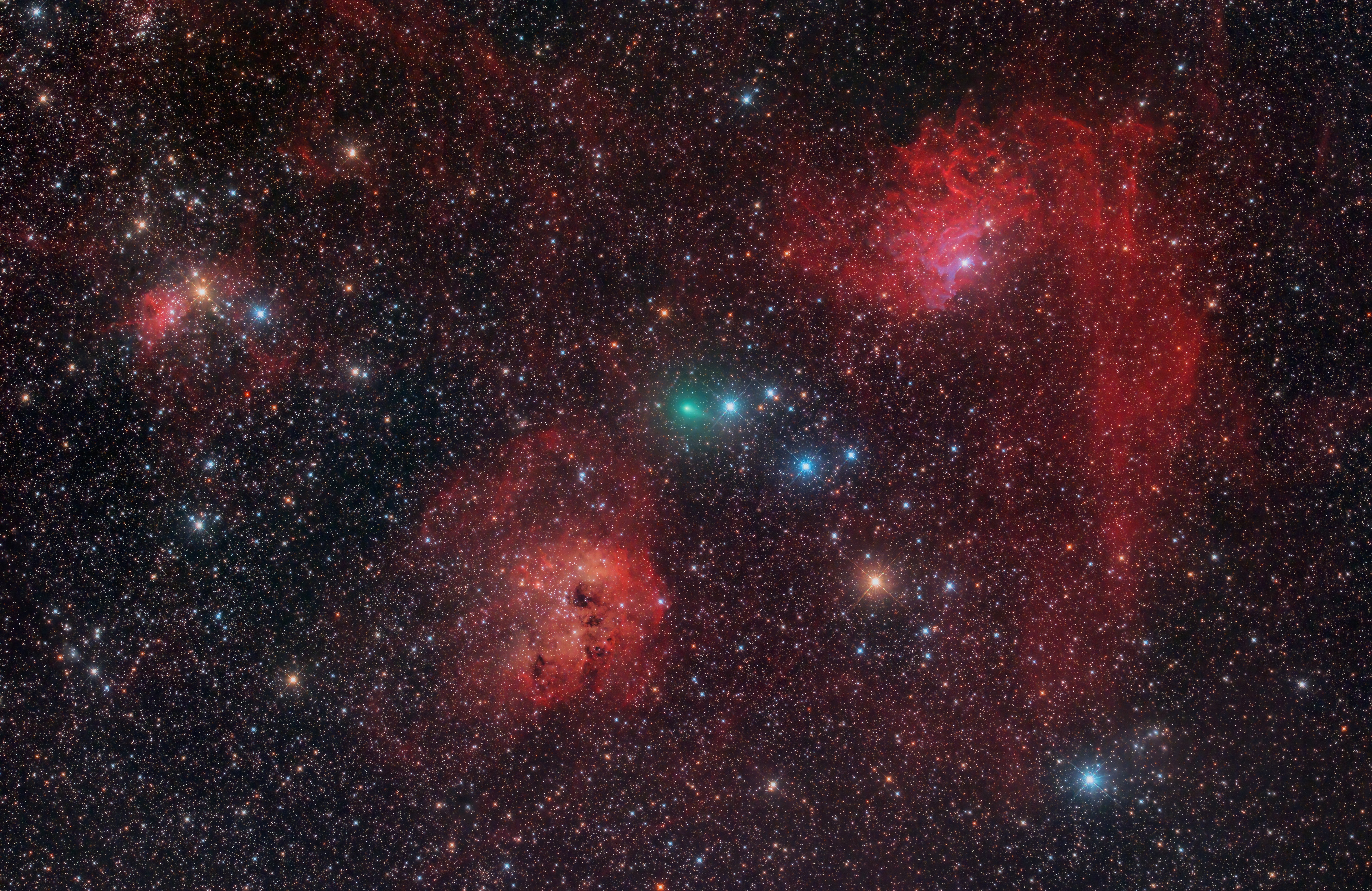 Leserbilder Astronomie: Komet C/2020 M3 (ATLAS) und IC 405/410