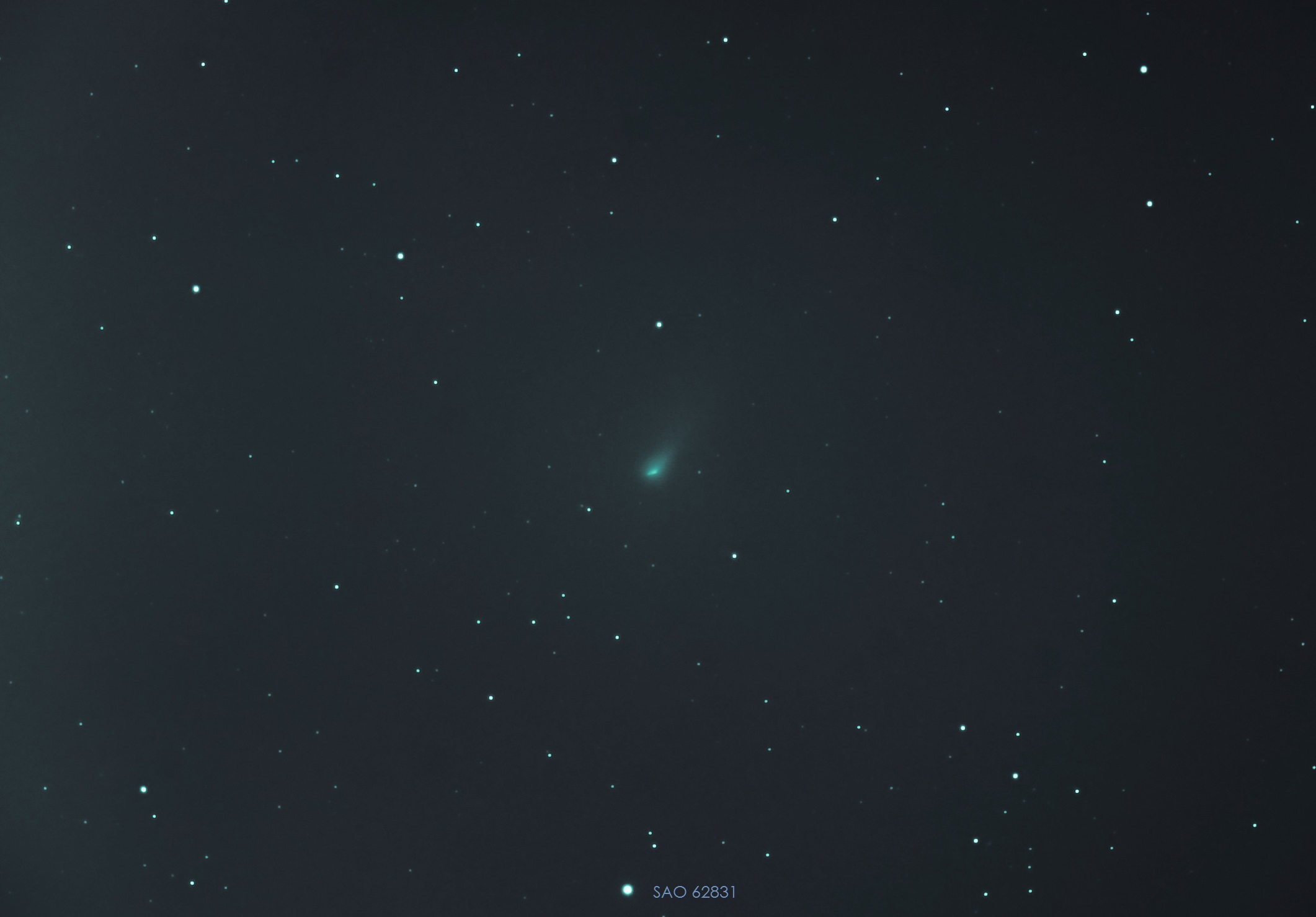 Komet Leonard war der erste Komet, der im Jahr 2021 entdeckt wurde. Nach seinem Entdecker benannt, Greg J. Leonard am Mount Lemmon Observatory in Tucson, wurde er am 3. Januar 2021 erstmals gesichtet. Nun wird berichtet man könne ihn Mitte Dezember vielleicht mit bloßem Auge erblicken. In dieser Nacht versuchte ich mein Glück aus der Speichersternwarte heraus, wo ich die minus 3,5°C nicht so direkt spürte. Mit viel Glück erspähte ich ihn nur haarscharf seitlich über mein Dach hinweg … ! Gottseidank kein Kamin im Weg, und so kommte ich 85 Bilder knipsen, welche ich ohne viel Aufwand mit IRIS stackte, da er sich nur sehr langsam bewegt. Zur Zeit ist er bei 12,9 mag und etwa 188 Millionen Kilometer entfernt. Am 12. Dezember wären es dann nur nach 35 Millionen Kilometer. Also … abwarten und Tee trinken.