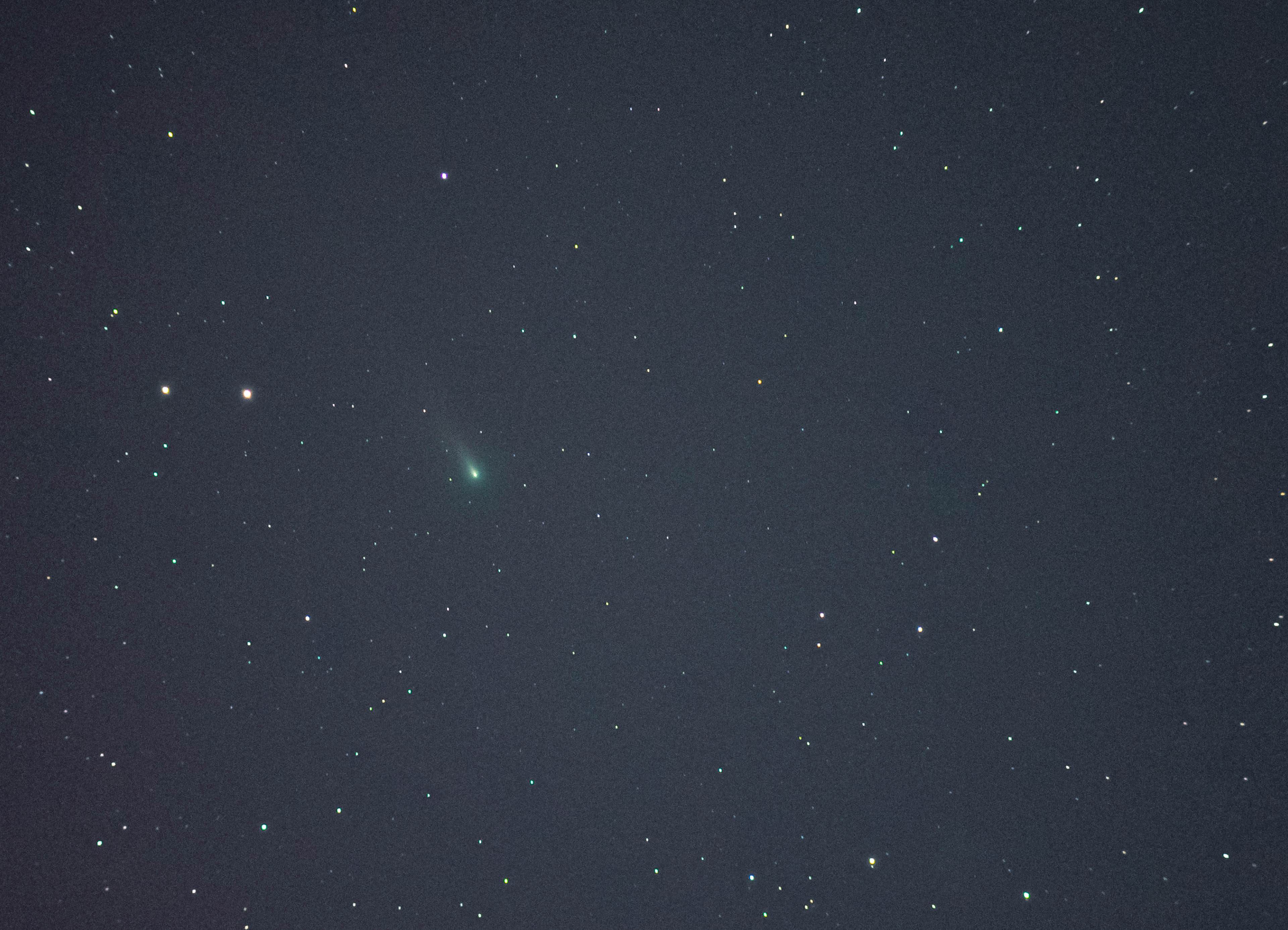 Komet Leonard, C/2021 A1 am 22. November 2021: Gegen 4 Uhr klahrte es auf und man konnte ihn trotz Mondlicht aufnehmen. Helligkeit z.Zt. 8 bis 9 mag. Anfang Dezember soll man ihn sogar mit bloßem Auge bei <5mag beobachten können.