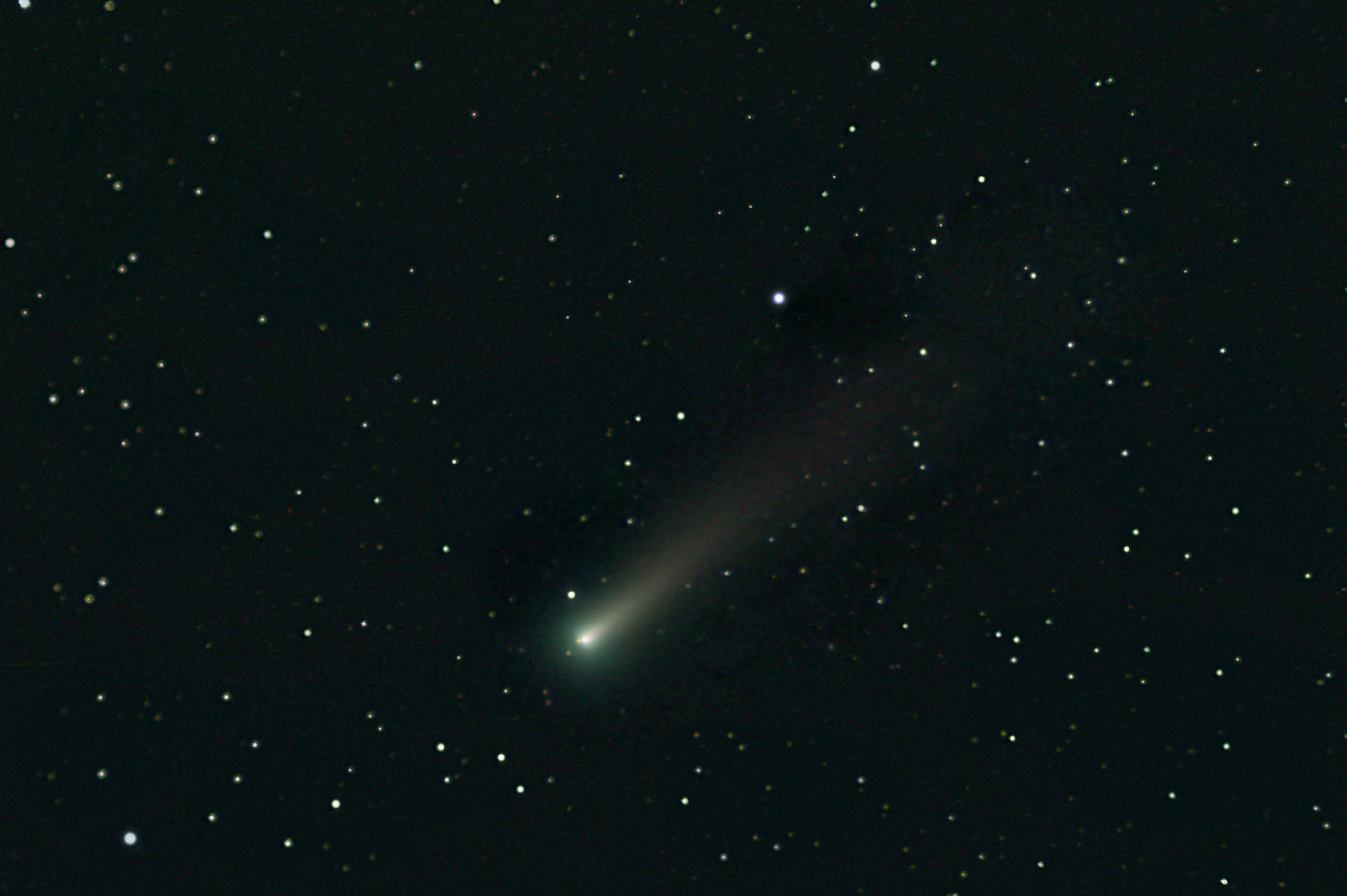 Nach starker Bewölkung bei uns in Norddeutschland gab es in der Nacht vom 27. zum 28. November kurzzeitig einige Wolkenlücken. Um 5:30 Uhr war es dann für 15 Minuten einigermaßen klar, und ich konnte den Kometen von meiner Sternwarte aus aufnehmen.