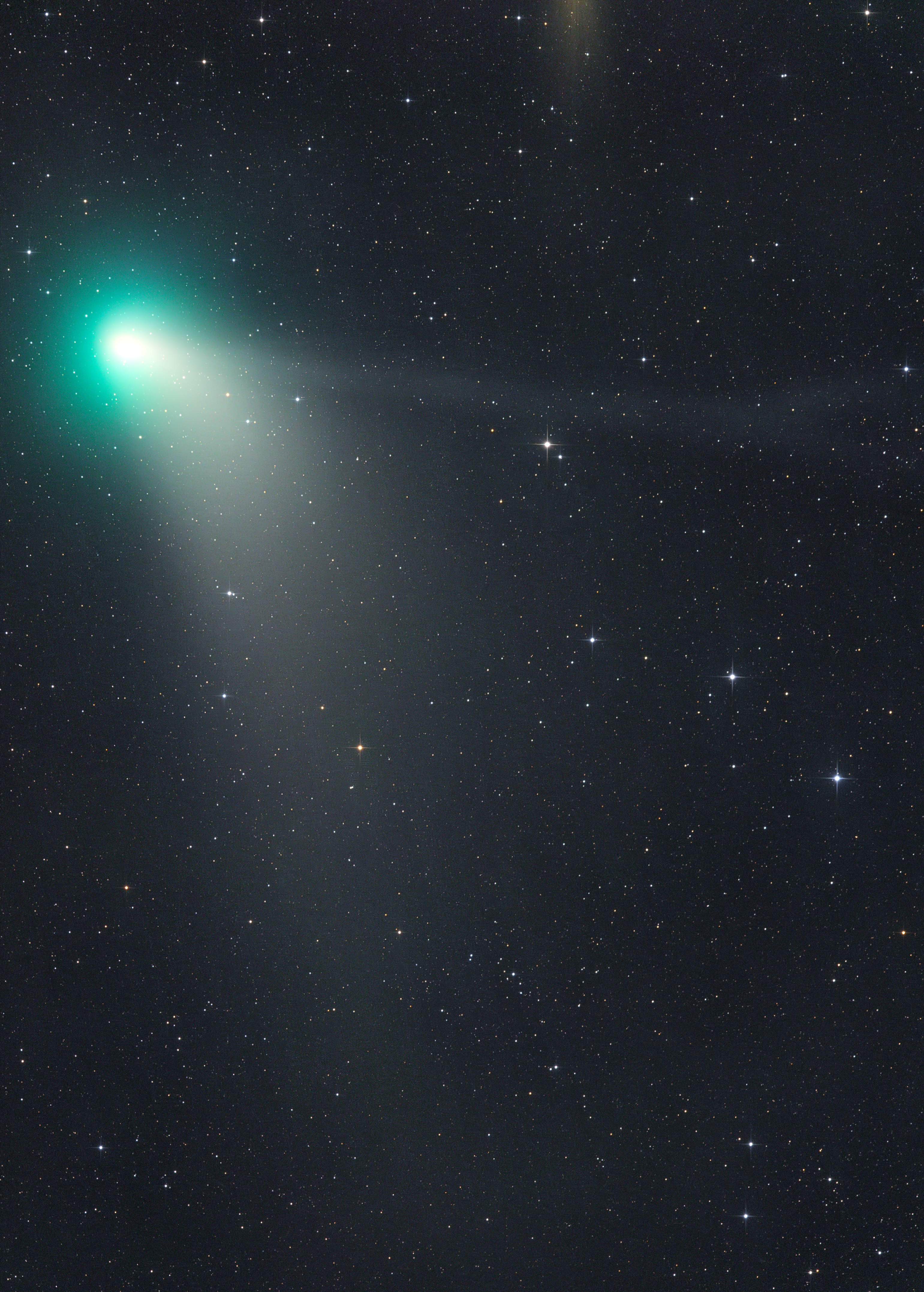 Der Staubschweif ist nun dominierend, während der Ionenschweif deutlich an Helligkeit verloren hat.