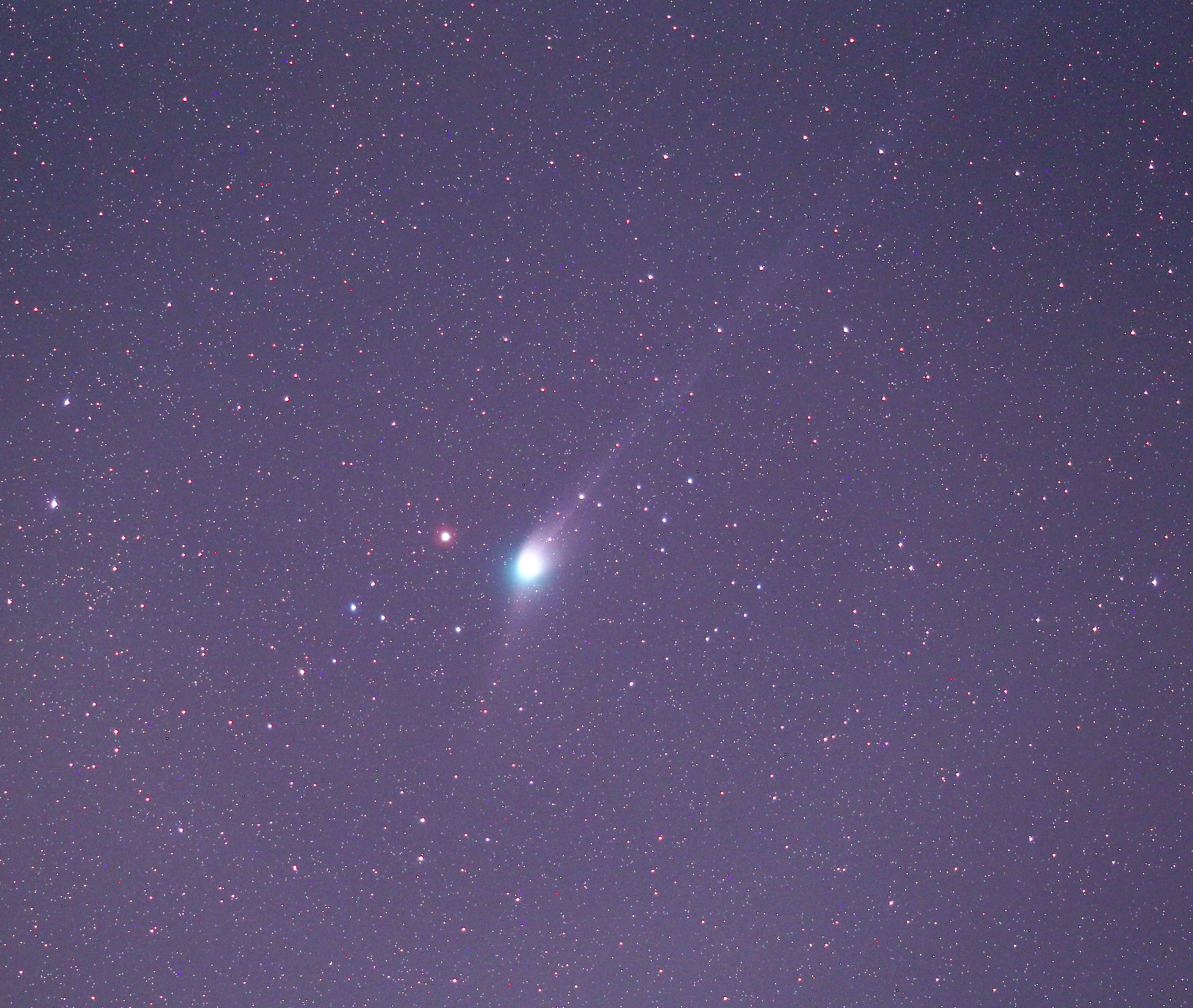 Die Schülerinnen und Schüler des Astrokurses der Kantonsschule Heerbrugg aus der Ostschweiz beschäftigen sich in einem Projekt intensiv mit dem Kometen, nachdem sie fleissig eigene Daten gesammelt haben. Das Bild ist aus dieser Serie und wurde am 25. Januar 2023 mit einer Canon D6 mit 200 mm aufgenommen. Schön zu sehen sind beide Schweife.