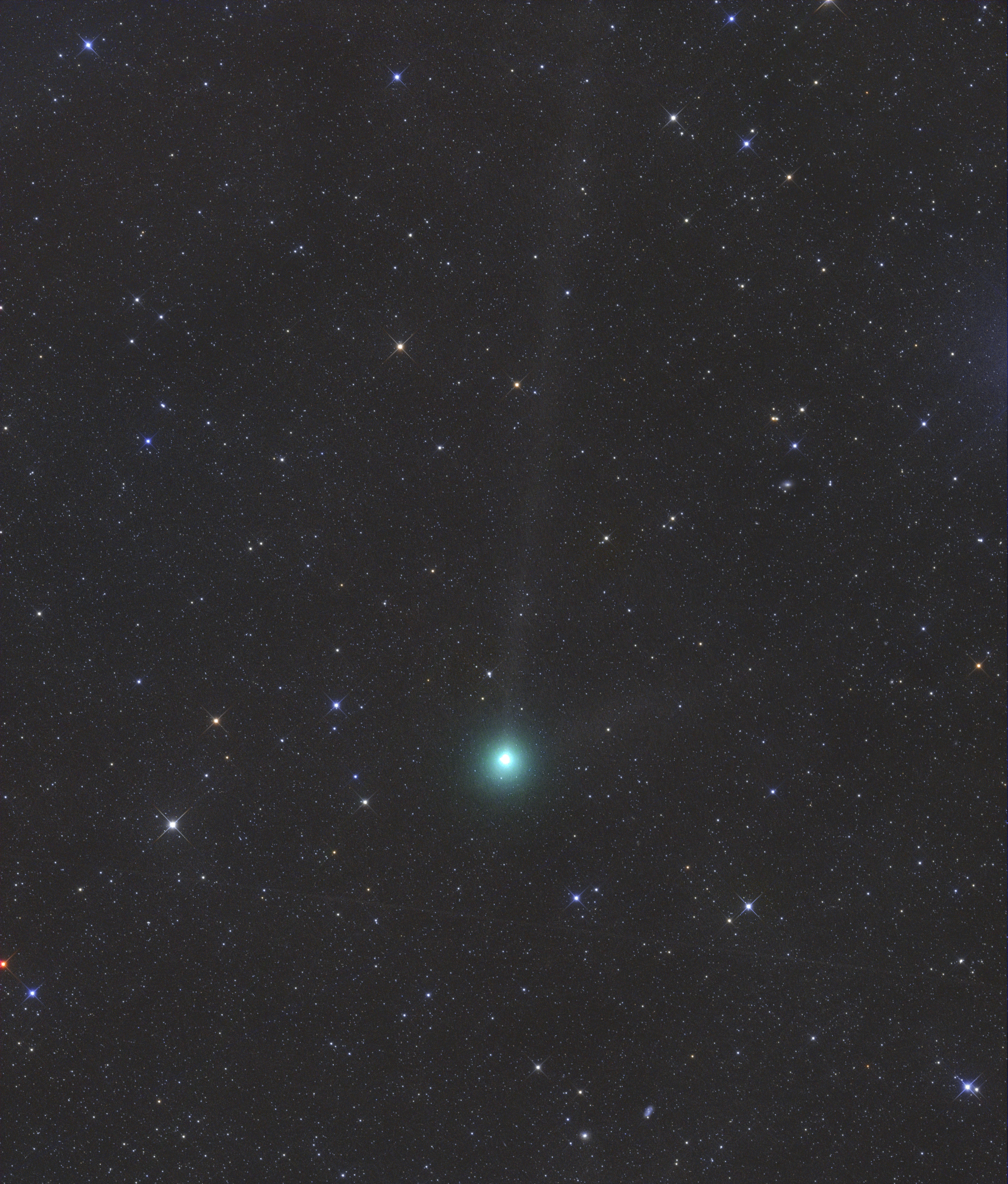 Überraschend zeigte der Komet zwei schwache Schweife – einen dünnen Gasstrahl und einen breiteren Staubschweif.