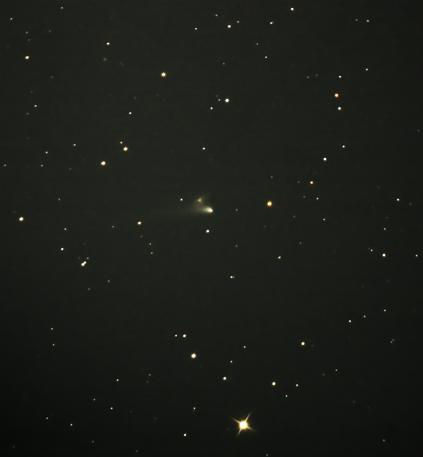 Das Wetter war am 16. September 2022 mal eine Stunde günstig. Zufällig überlief der Komet C/2022 E3 die Galaxie UGC 10205. Die ist relativ hell, wie man auch am Bild sieht. "Guide 9" sagte 14,2 mag und eine Entferung von etwa 290 Millionen Lichtjahren.