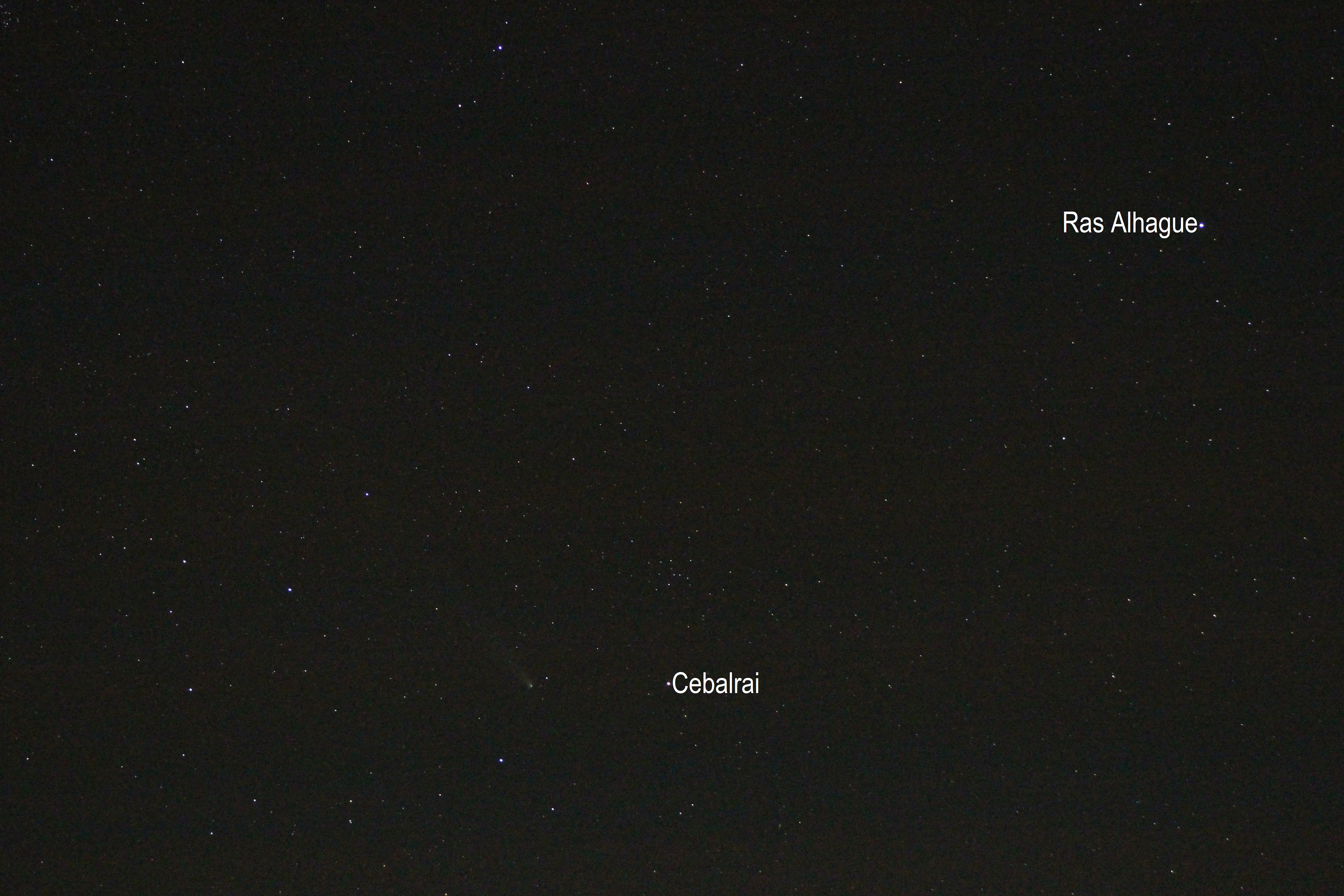 Leserbilder Astronomie: Komet C/2023 A3 Tsuchinshan-ATLAS im Sternbild Schlangenträger (Objekte beschriftet)