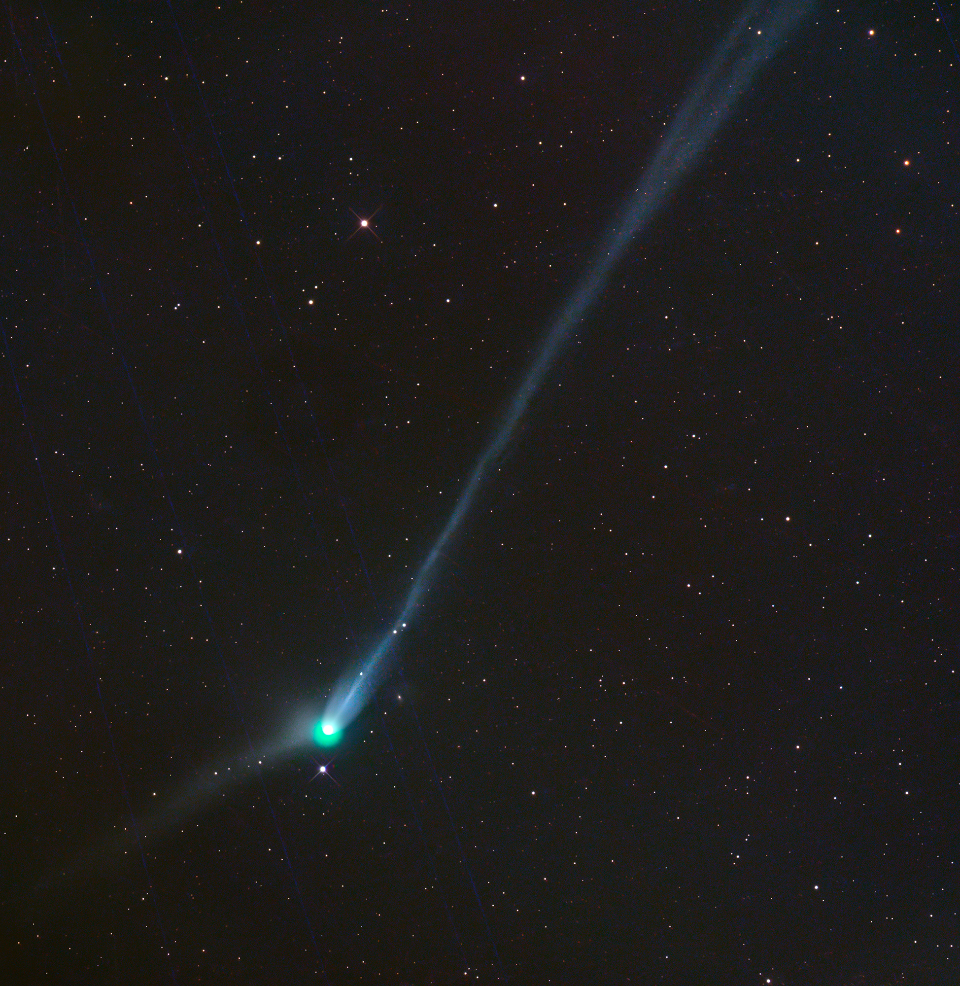 Der Überraschungskomet - er entwickelte einen wunderschönen und langen Gasschweif und zugleich ist auch ein kurzer Gegenschweif sichtbar. Sehr schwierig zu fotografieren, da er während der Dämmerung nur etwa acht Grad über den Horizont steht.