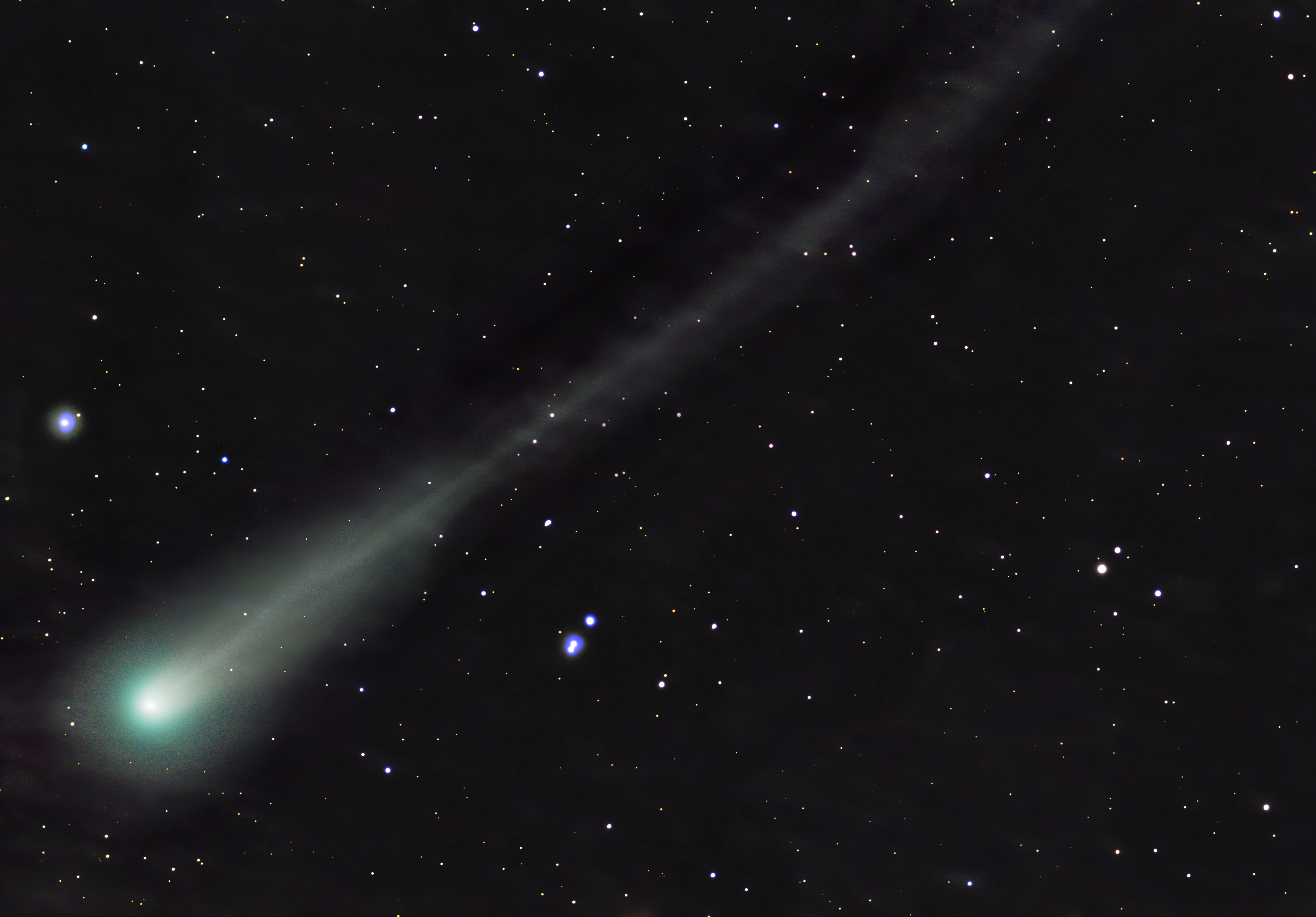 Am frühen Morgen des 1. Oktober 2025 ermöglichte ein klarer Himmel bei uns in Norddeutschland bei schon winterlichen Temperaturen die Aufnahme dieses Kometen. Zahlreiche Aufnahmen mit zwei Minuten Belichtungszeit ergaben dann dieses Foto, bei dem auch der Schweif deutlich sichtbar wurde.