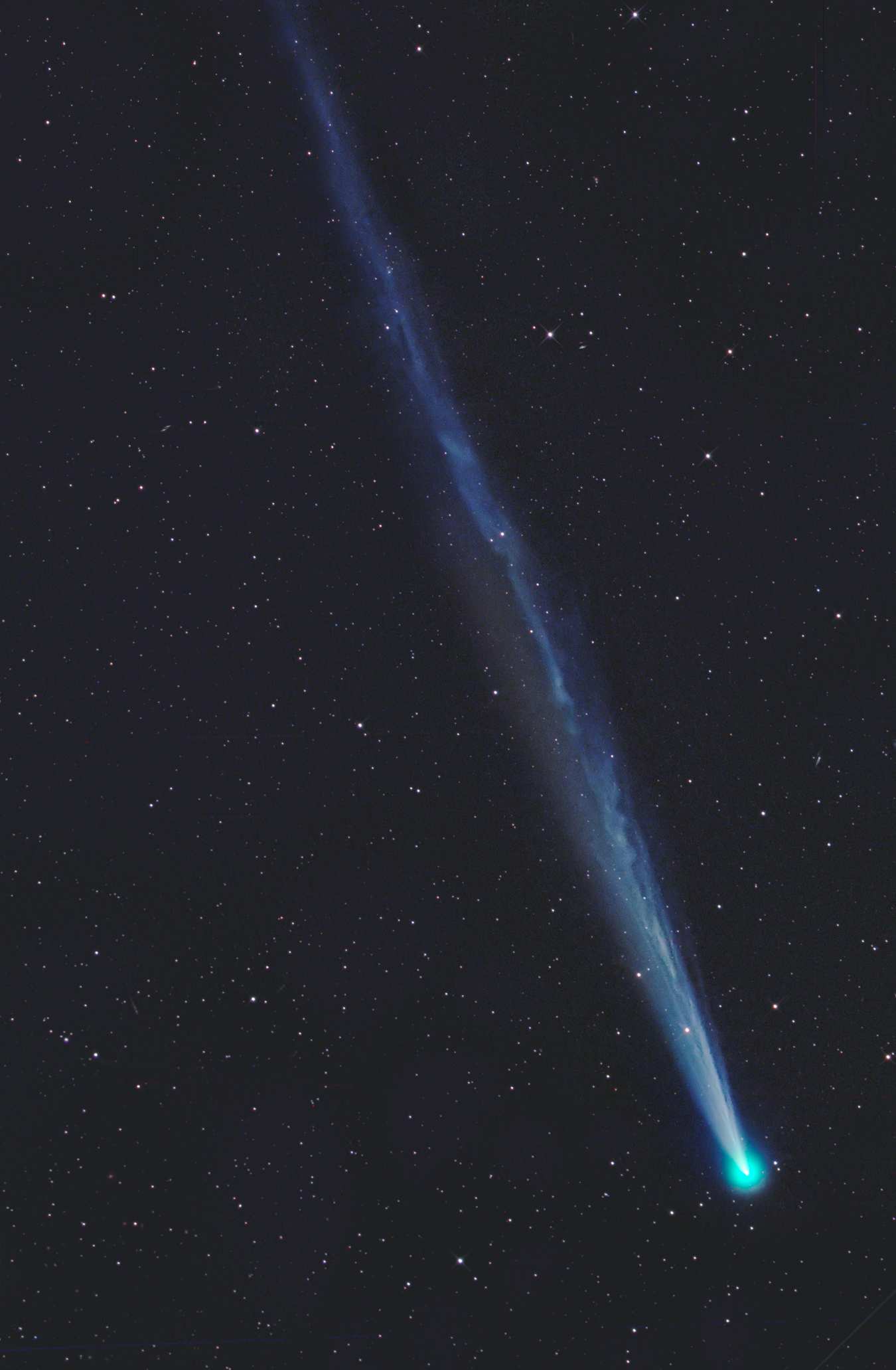 Nun hat der Komet endlich eine offizielle Bezeichung und eine gerechnete Bahn. Zur Zeit dieser Aufnahme lässt der Sonnenwind den Gasschweif sehr zerzaust aussehen
