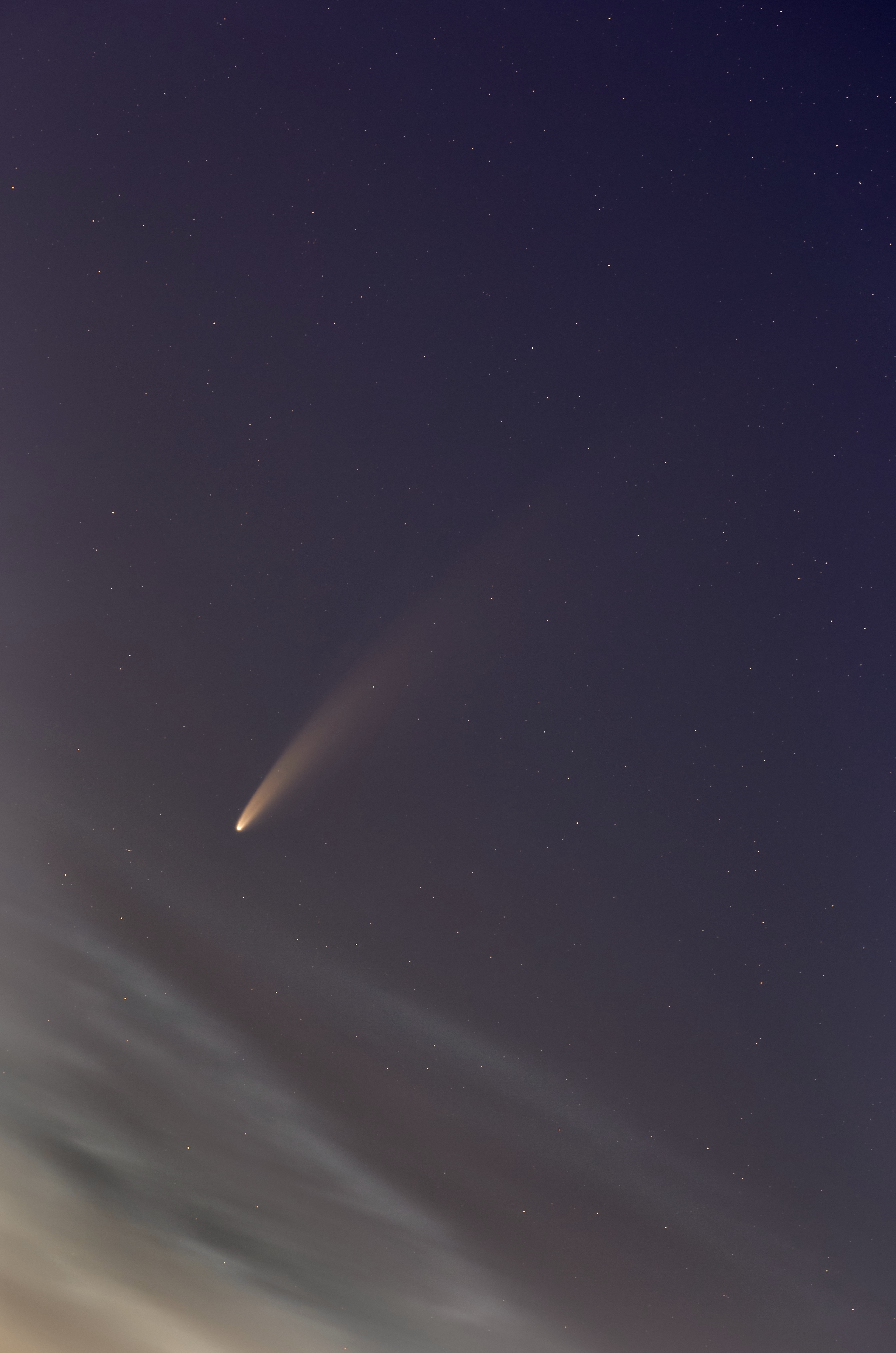 »Nur der frühe Vogel fängt den Kometen«: Gegen 3 Uhr morgens war ich fotografisch bewaffnet schon am Feld, um diesen Komet einzufangen. Eindrucksvoll freisichtig!