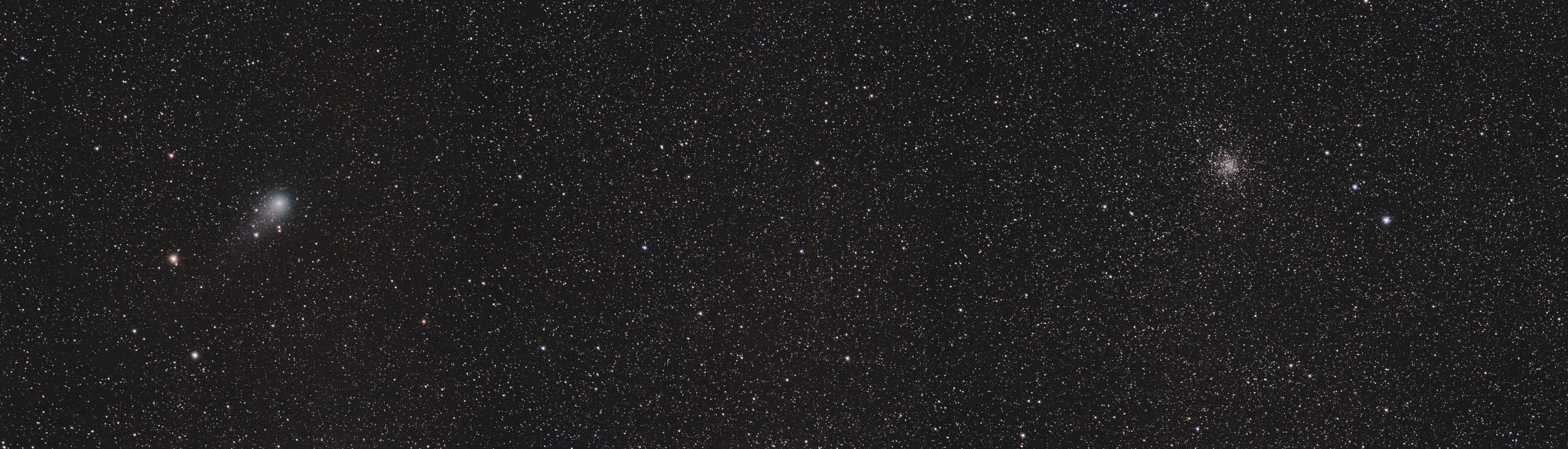 Da die Wetterbedingungen für die Begegnung von Garradd mit M 71 am 26. August 2011 eher schlecht aussahen, entschied ich mich, beide bereits zwei Tage vorher zu fotografieren. Das Bild ist ein Mosaik aus 3 Aufnahmen, welche jeweils 15 x 25 Sekunden bei 1600 ISO belichtet wurden.