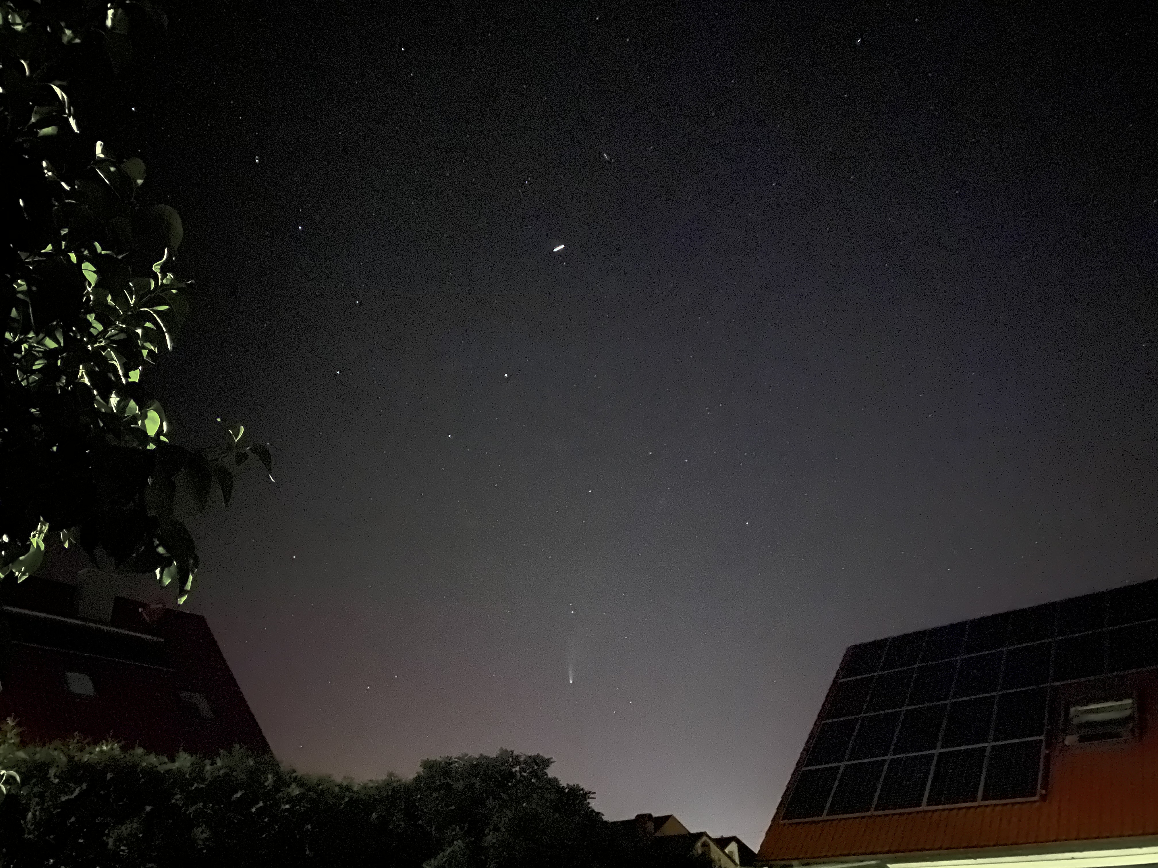 Die ISS kam aus dem Großen Wagen, der über dem Kometen stand. Ein Schnappschuss mit dem Handy, nach einem schönen Abend im Garten.