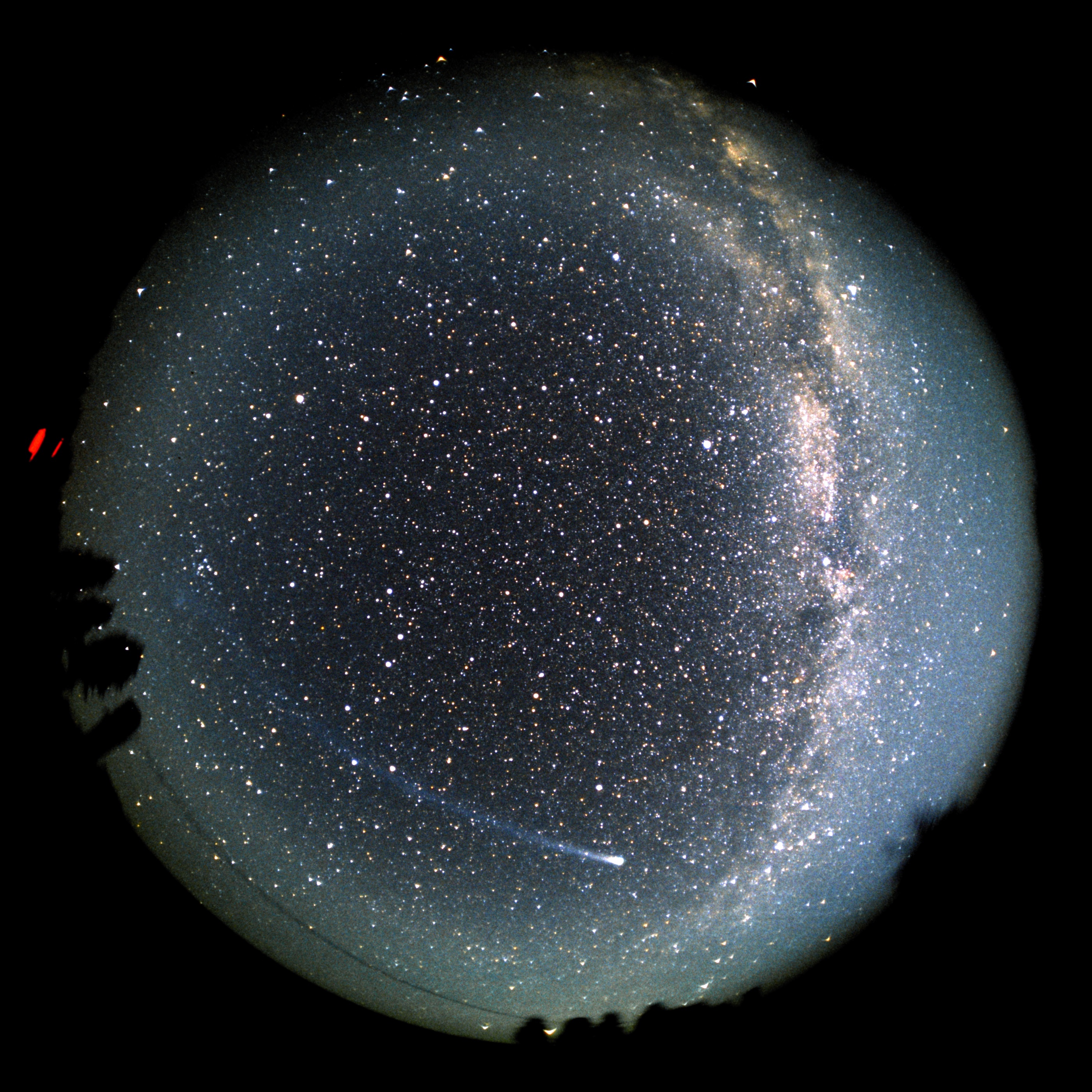 Die Aufnahme zeigt das digital neu aufbearbeitete Foto des Kometen Hyakutake (C/1996 B2), des für mich schönsten Kometen der letzten Jahrzehnte, aufgenommen in der Nacht vom 27./28. März 1996. Die ca. 9 Minuten lang belichtete Aufnahme entstand mit einer selbstgebauten AllSky-Kamera (Fisheye-Objektiv, 6x6-Rollfilm) am Eisenberg im Knüllgebirge, Hessen.