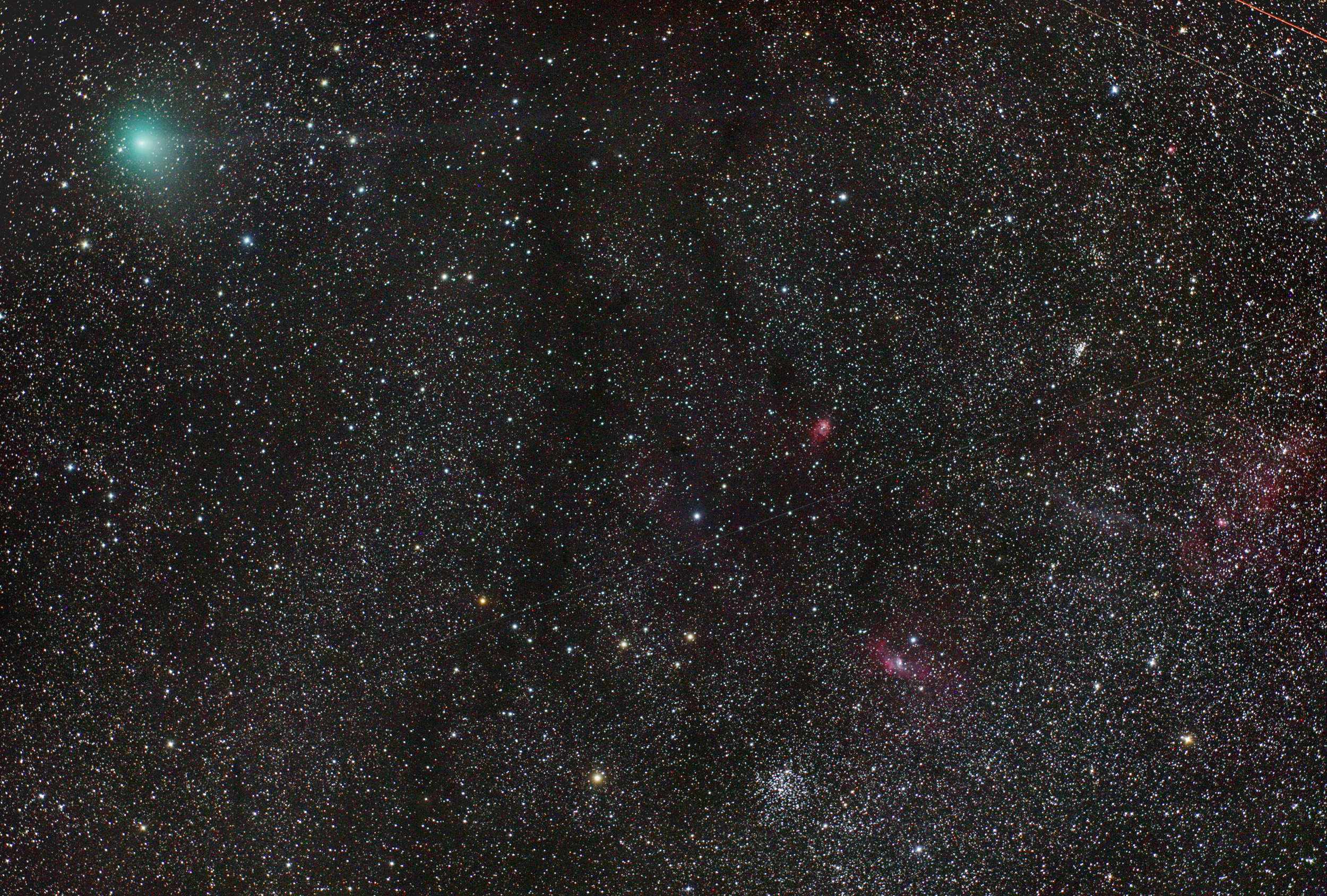 Die Begegnung mit M52 war sehr schwierig zu fotografieren, weil der Komet C/2014 E2 Jacques sich sehr schnell bewegt und leider einen schwachen Gasschweif zeigt.