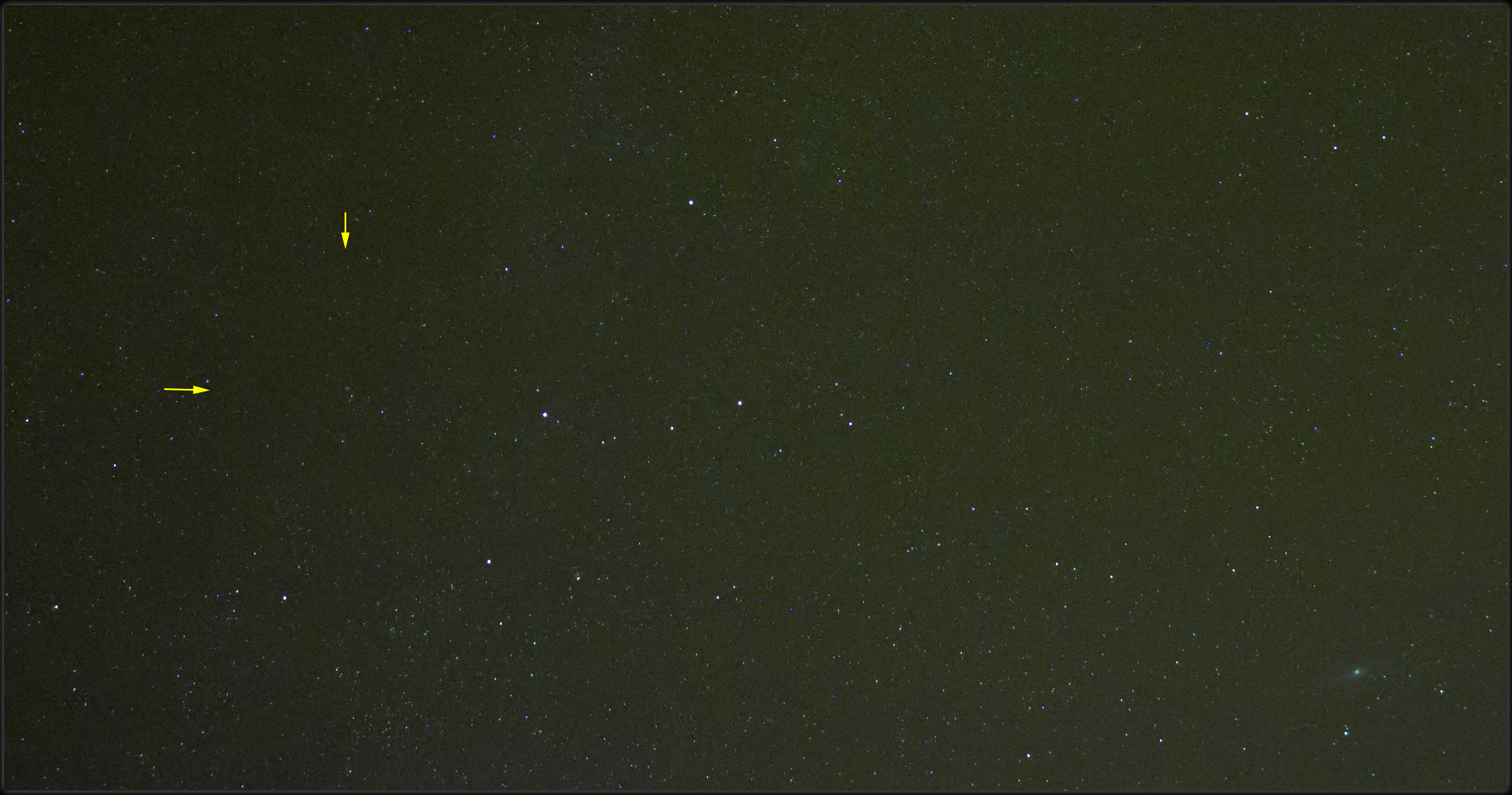 Nach all den hervorragenden Aufnahmen in der Rubrik "Wunder des Weltalls" in SuW könnte der Eindruck entstehen, Jacques sei ein sehr spektakuläres Objekt. Meine Aufnahme zeigt eher die Realität. Am 23.8.2014 war er nicht mal im 7x42-Fernglas zu sehen.