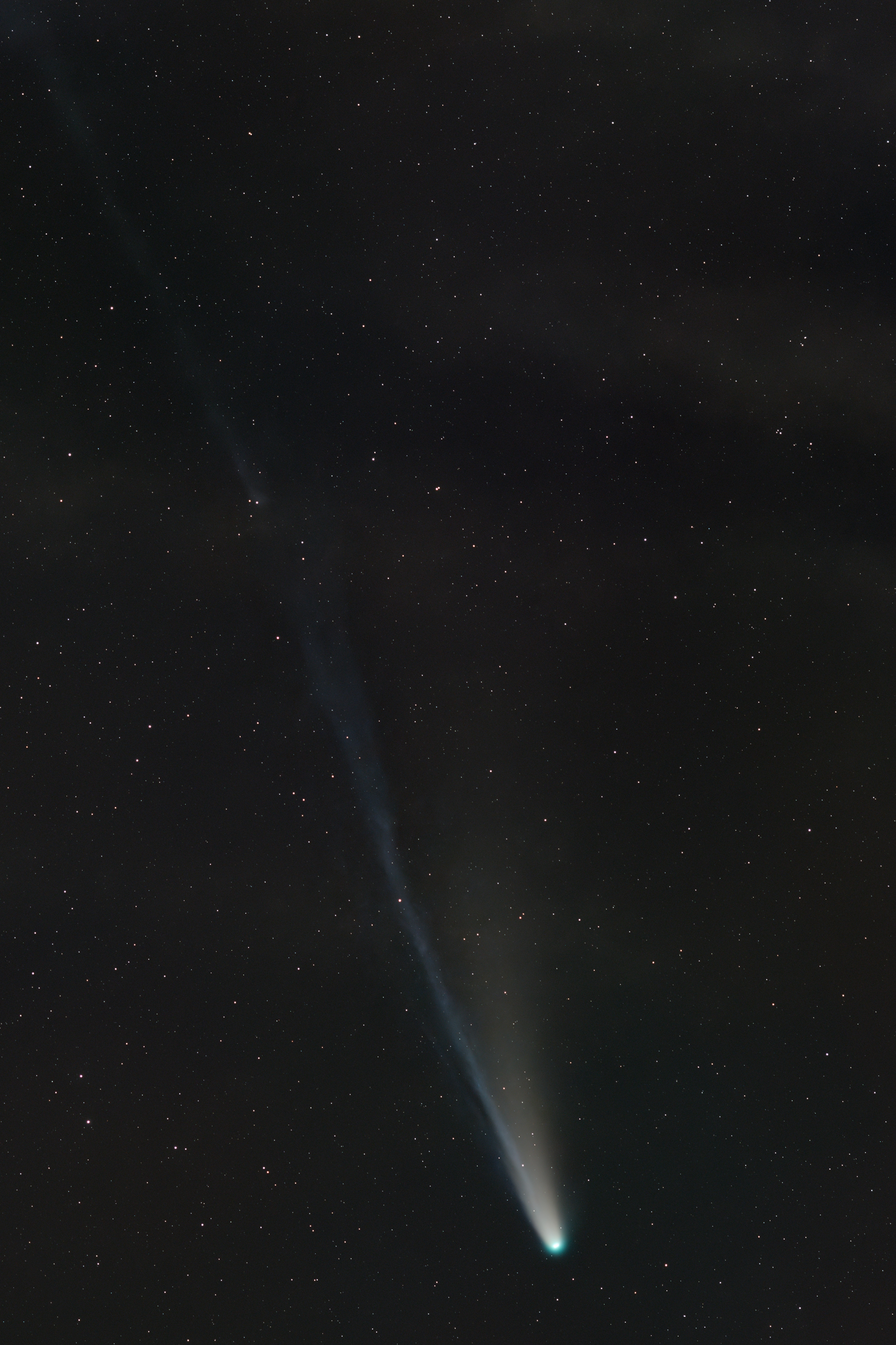 Immer weiter voran schreitet die »Rotation« des Schweifs des Kometen C/2025 A6 (Lemmon), während er seine Position bezogen auf die Sonne ändert. Ebenso ändert sich nichts an der Abend für Abend vorhandenen Bewölkung, die bei den Aufnahmen stört.