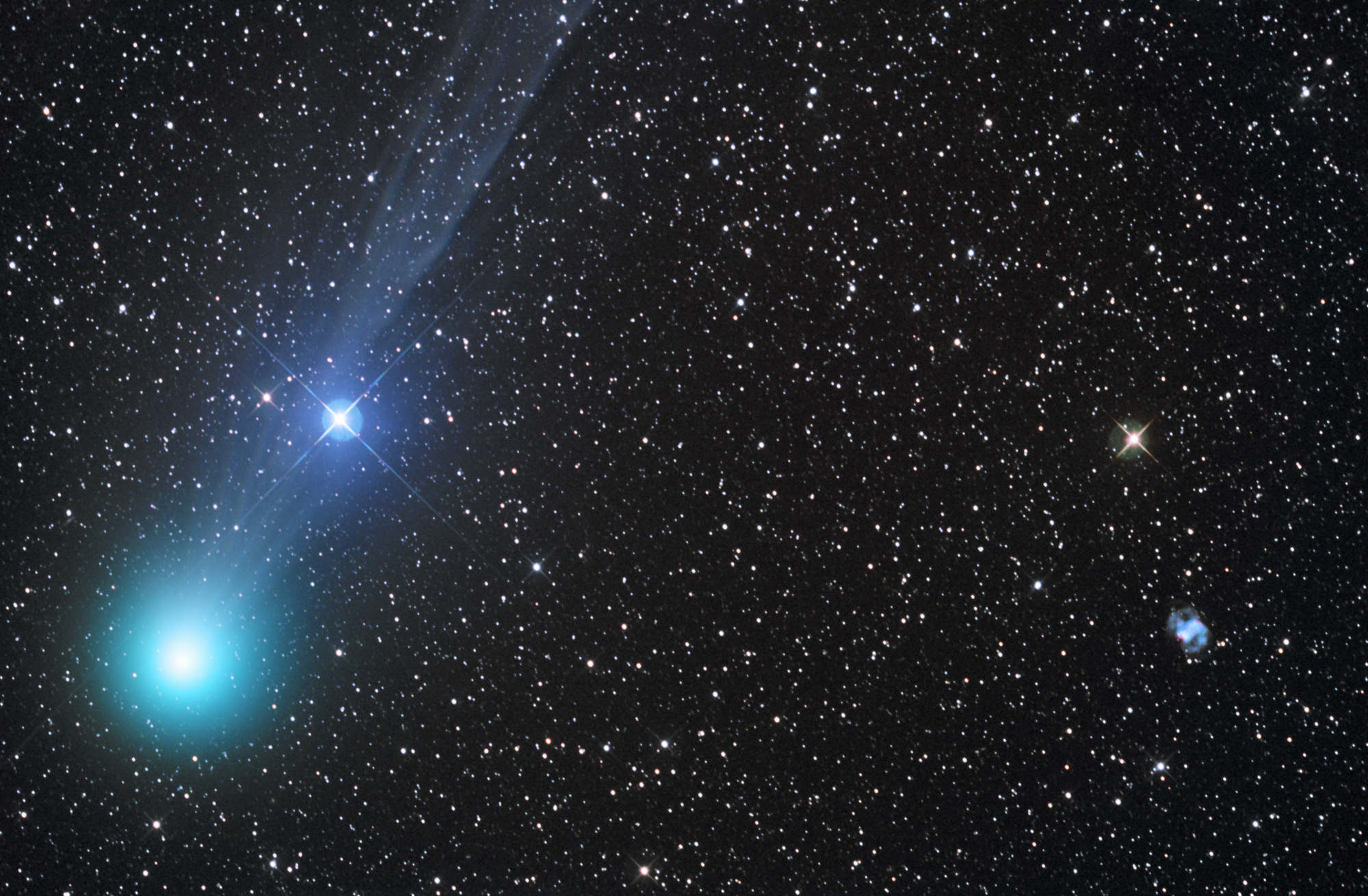 Leserbilder Astronomie: Komet Lovejoy bei Messier 76