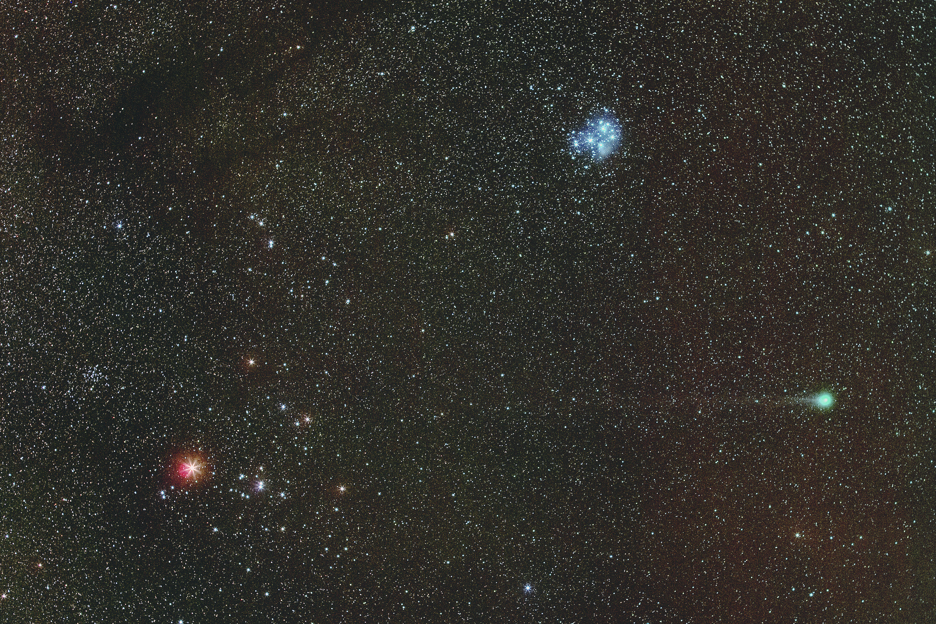 Leserbilder Astronomie: Komet Lovejoy mit Hyaden und Plejaden
